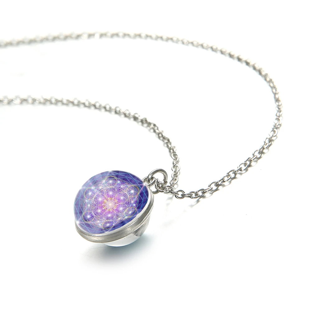 Романтическая метатронная кубическая Геометрическая Цветочная подвеска s Charms Волшебная гексаграмма звезда двойная сторона кабошон ожерелье со стеклянным шариком ожерелье ювелирные изделия