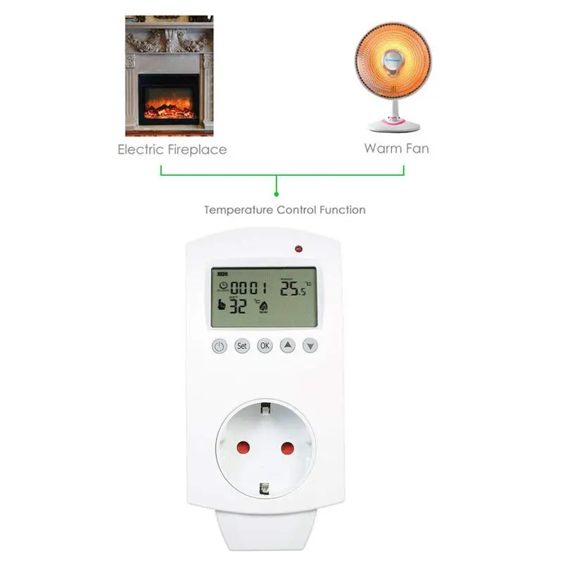 Широкий диапазон контроля температуры 5 ~ 60 градусов Цельсия (41 ~ 140 градусов по Фаренгейту). Подключите непосредственно к беспроводной стене. Просмотр температуры тока и целевой температуры.