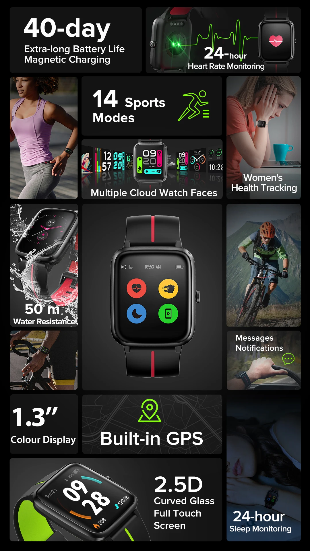 Получите более целостную картину своего здоровья Ulefone Watch GPS использует усовершенствованный оптический датчик HX3600, предлагая точный и непрерывный мониторинг сердечного ритма, мониторинг и анализ частоты сердечных сокращений, темпа и сожженных калорий, чтобы помочь вам достичь ваших целей по похудению.