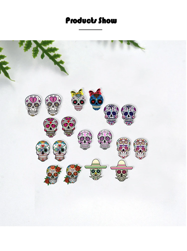 Цветочные акриловые серьги в виде скелета мексиканские народные сахарные черепа день мертвых картины ручной работы полимерные Серьги со вставками из эпоксидной смолы подарки для девочек