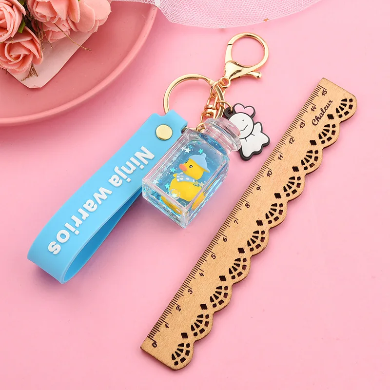 Милый Жидкий зыбучий песок брелок маленькая Желтая утка брелок для ключей динозавры креативная парфюмерная бутылка сумка брелки для мальчика детская игрушка