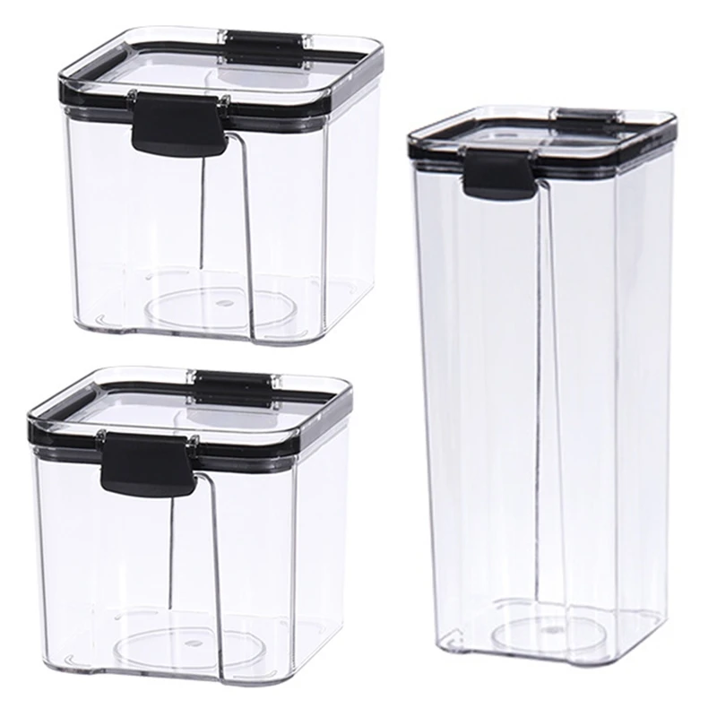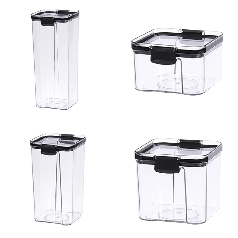 Квадратные пластиковые контейнеры для еды с крышками, фиксирующие зажимы, Штабелируемая герметичная кладовая