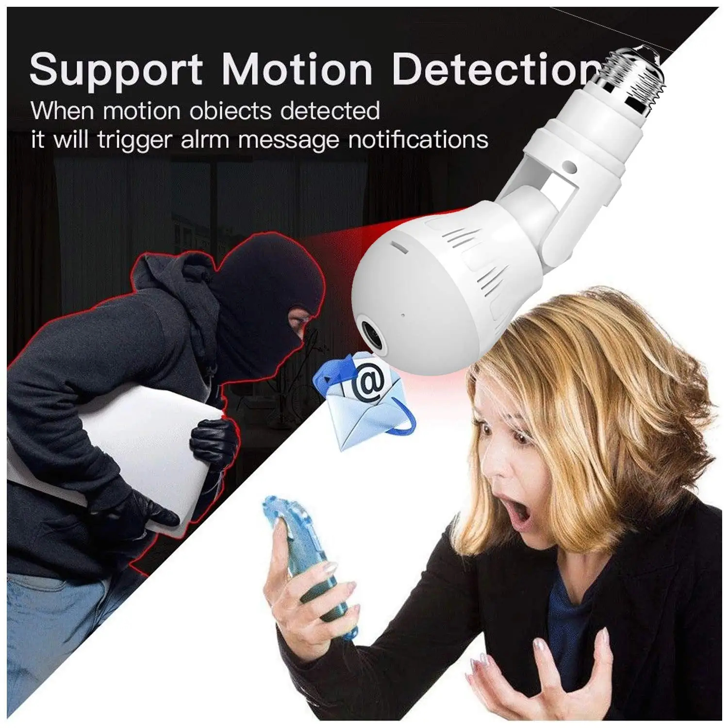 ● Панорамная камера на 360 °: HD 1080P светодиодный беспроводной светильник с панорамной камерой на 360 градусов без слепых зон, что позволяет обеспечить полное покрытие всей комнаты