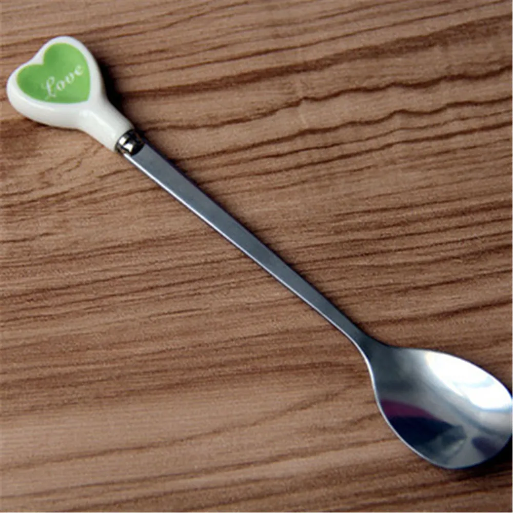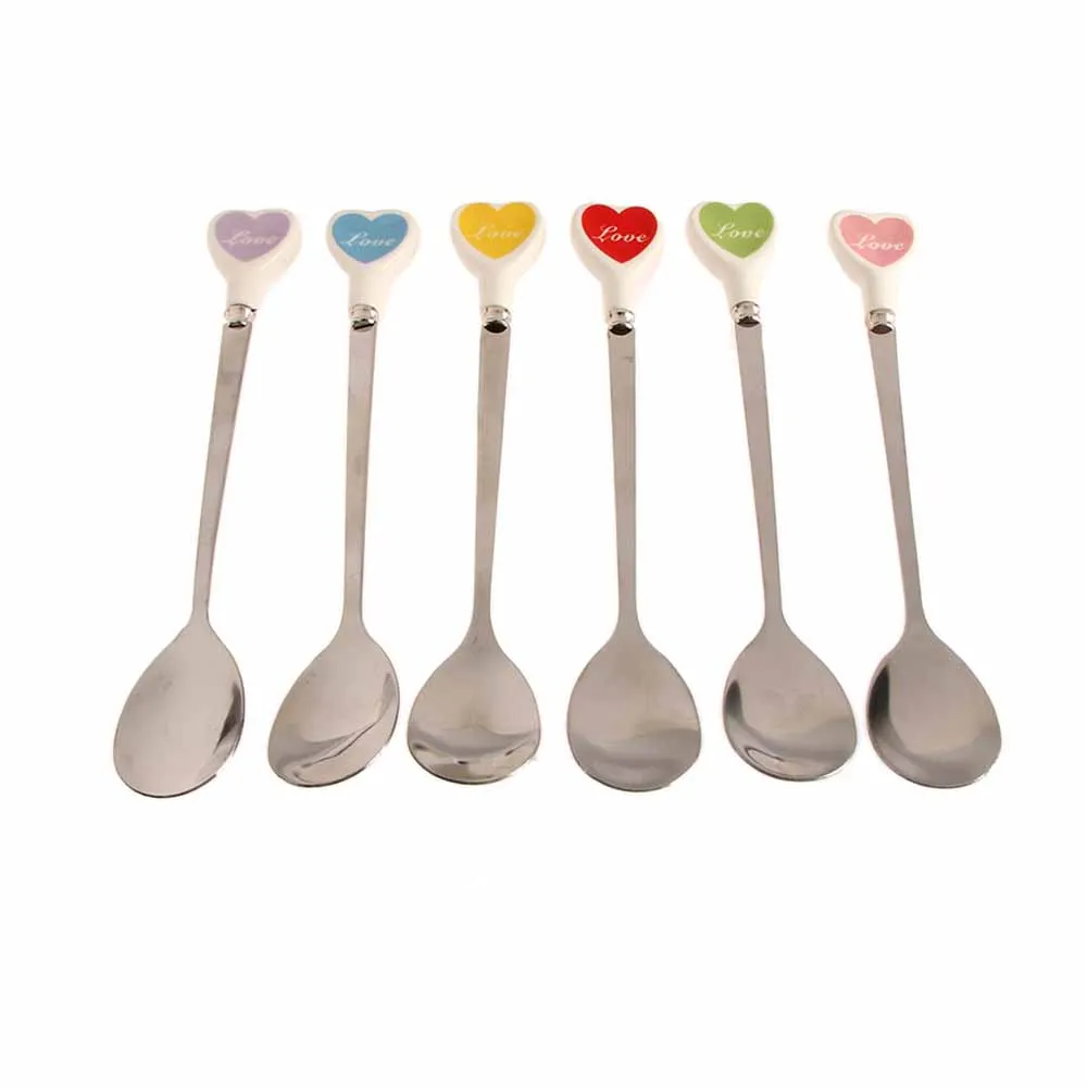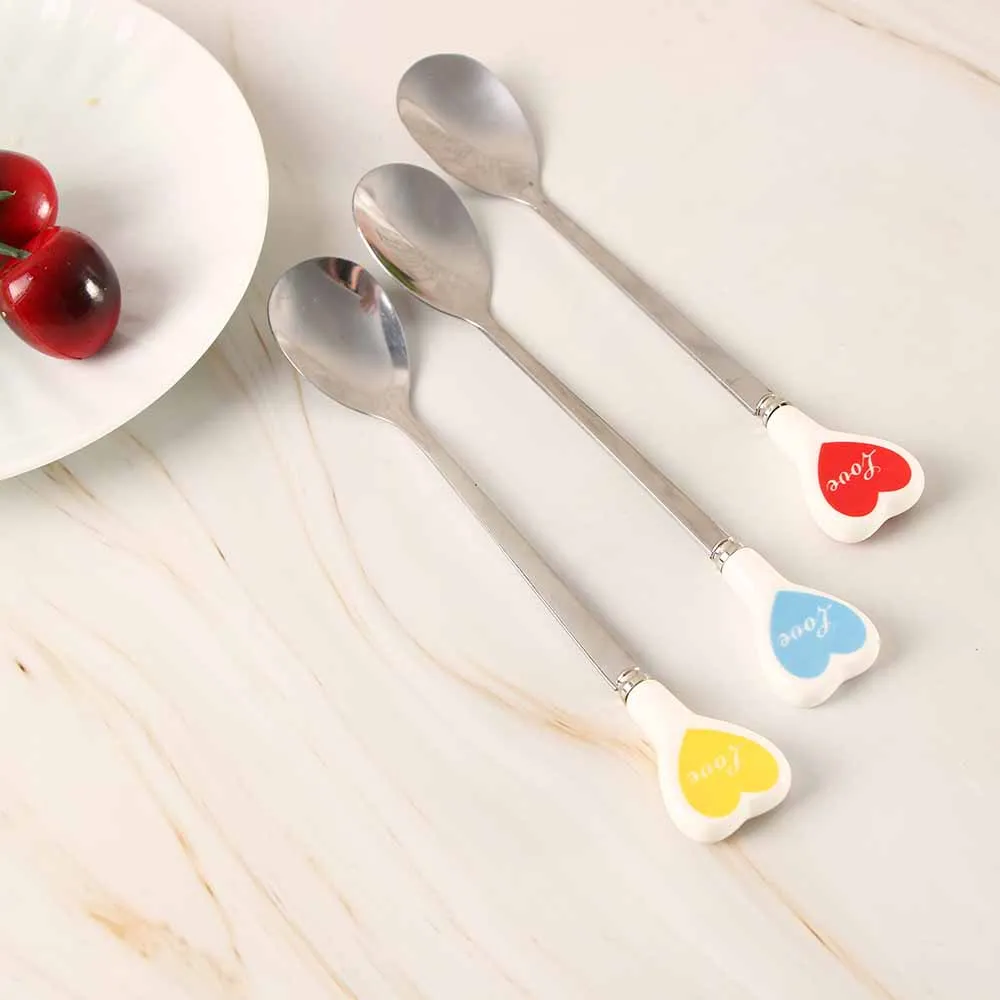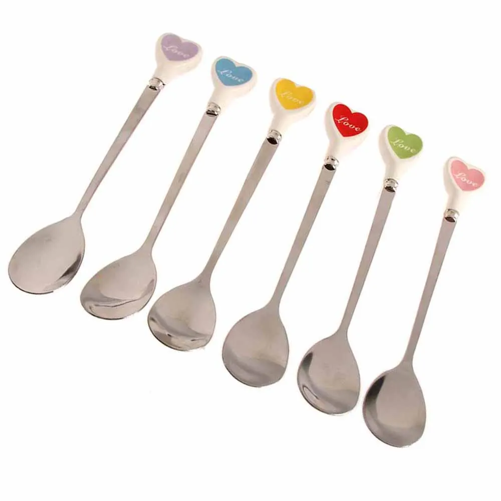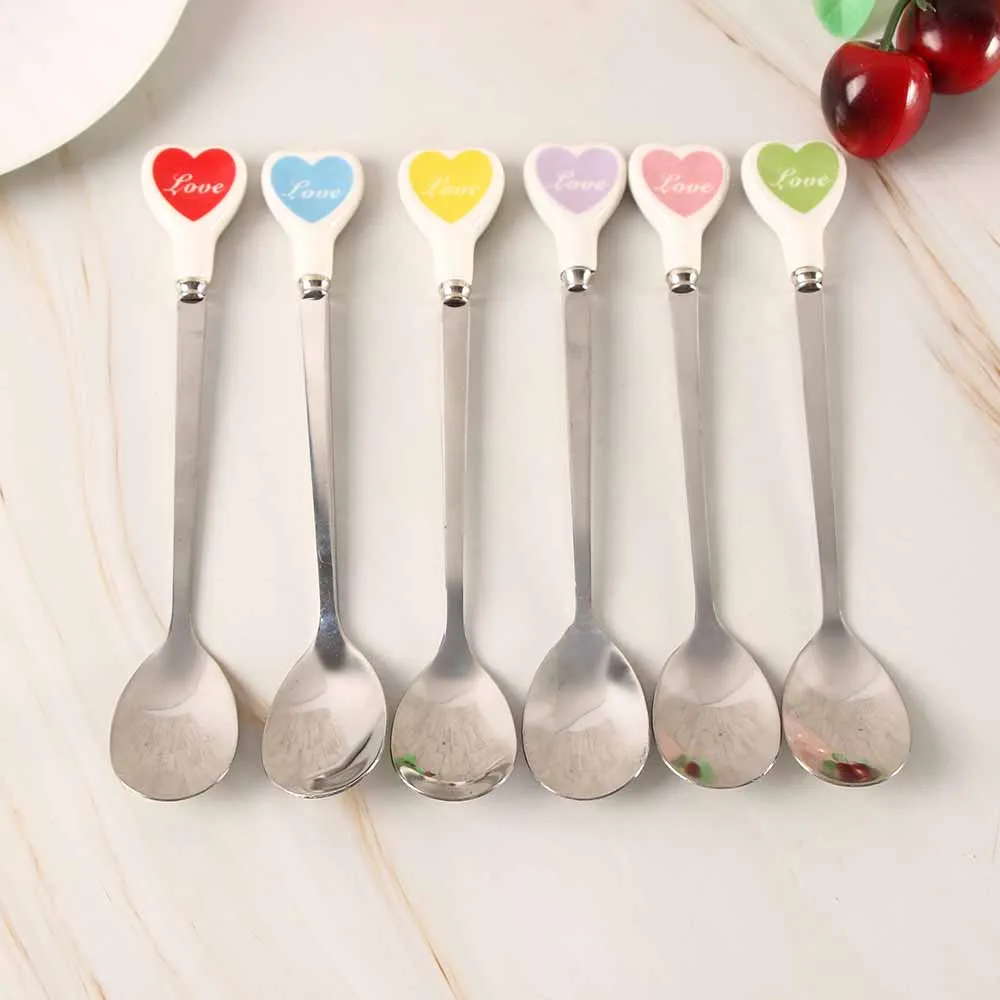 Десертная ложка для мороженого, чайная ложка с разноцветными сердечками, длинная керамическая ручка, кофейная ложка из нержавеющей стали для перемешивания супа, посуда