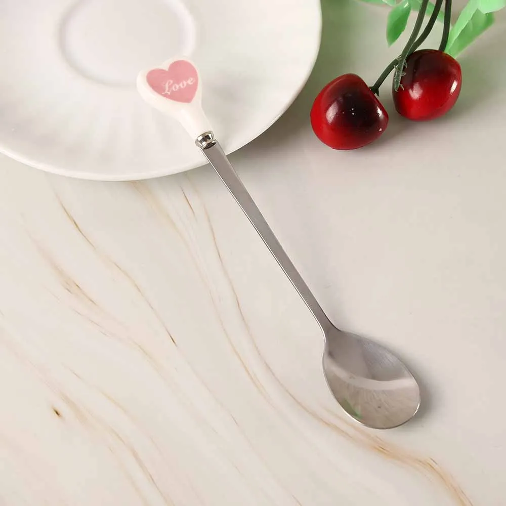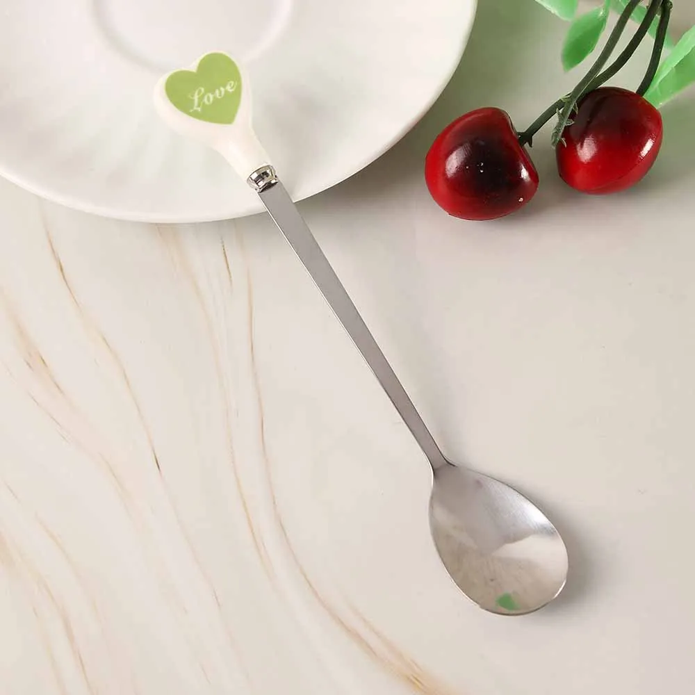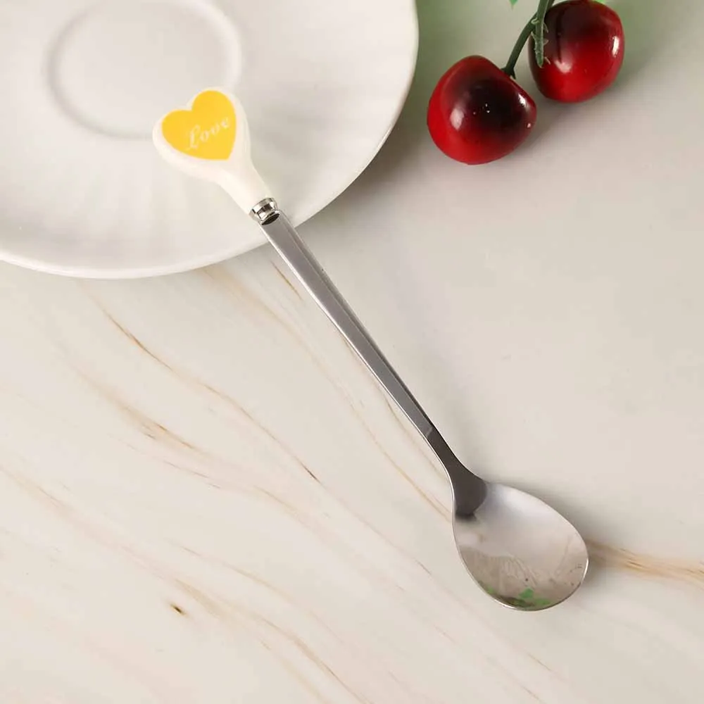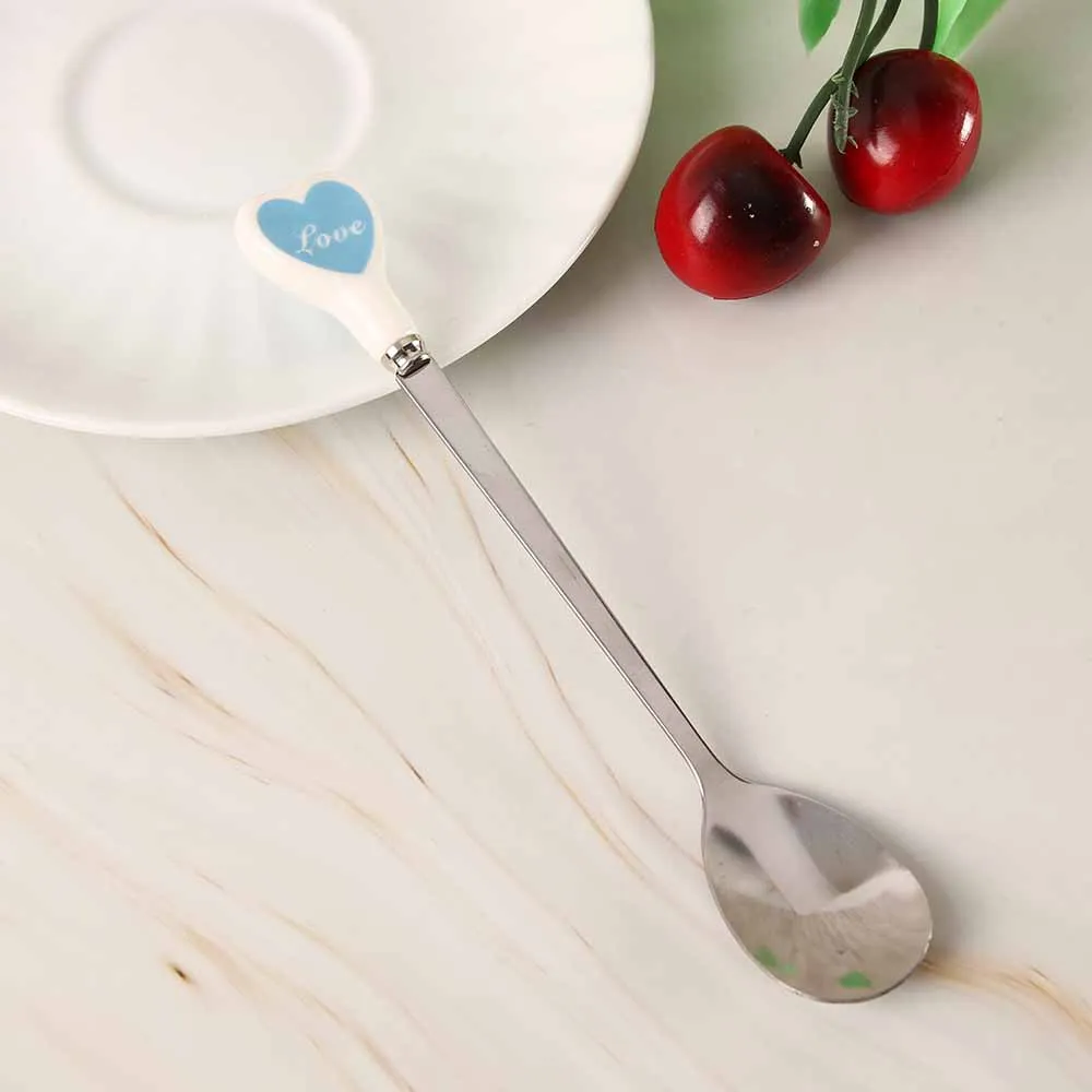 Десертная ложка для мороженого, чайная ложка с разноцветными сердечками, длинная керамическая ручка, кофейная ложка из нержавеющей стали для перемешивания супа, посуда