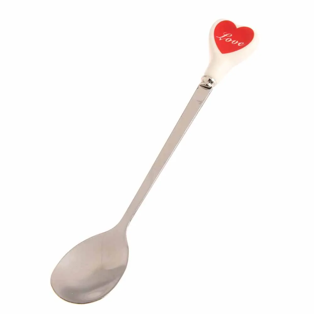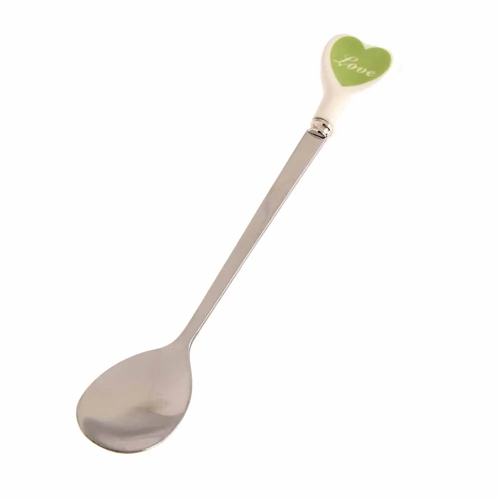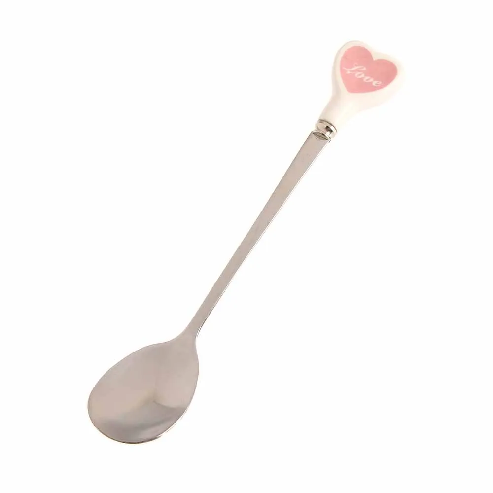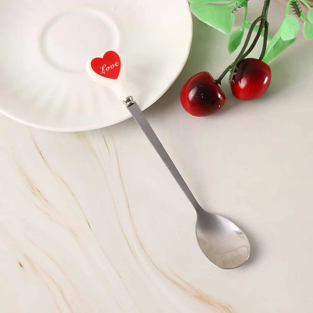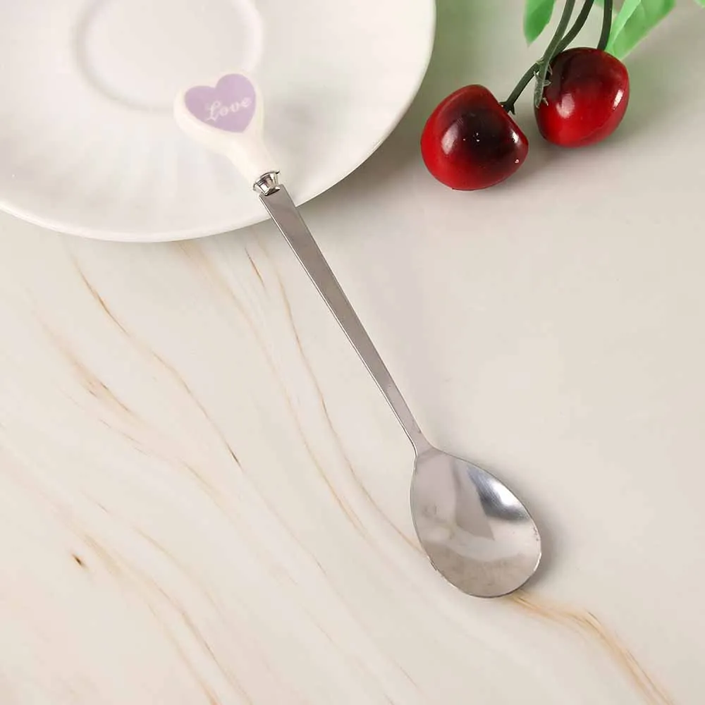 Десертная ложка для мороженого, чайная ложка с разноцветными сердечками, длинная керамическая ручка, кофейная ложка из нержавеющей стали для перемешивания супа, посуда