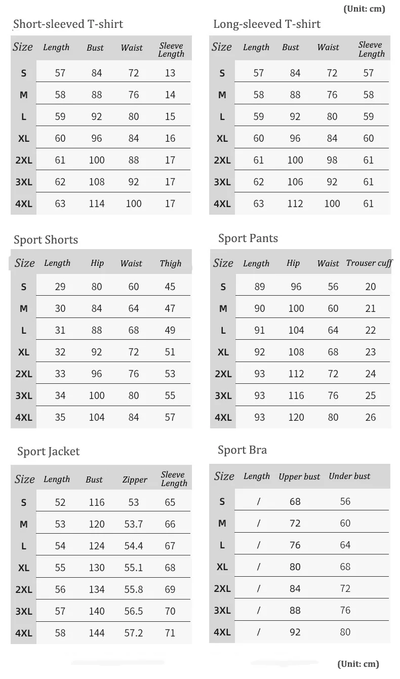 1. Эта женщина спортивный костюм информация о размерах предоставлена только в качестве справки, пожалуйста, учитывайте погрешность в 2-3 см (2,5 см = 1 дюйм) разницы в связи с тем, что измерения выполнены вручную.