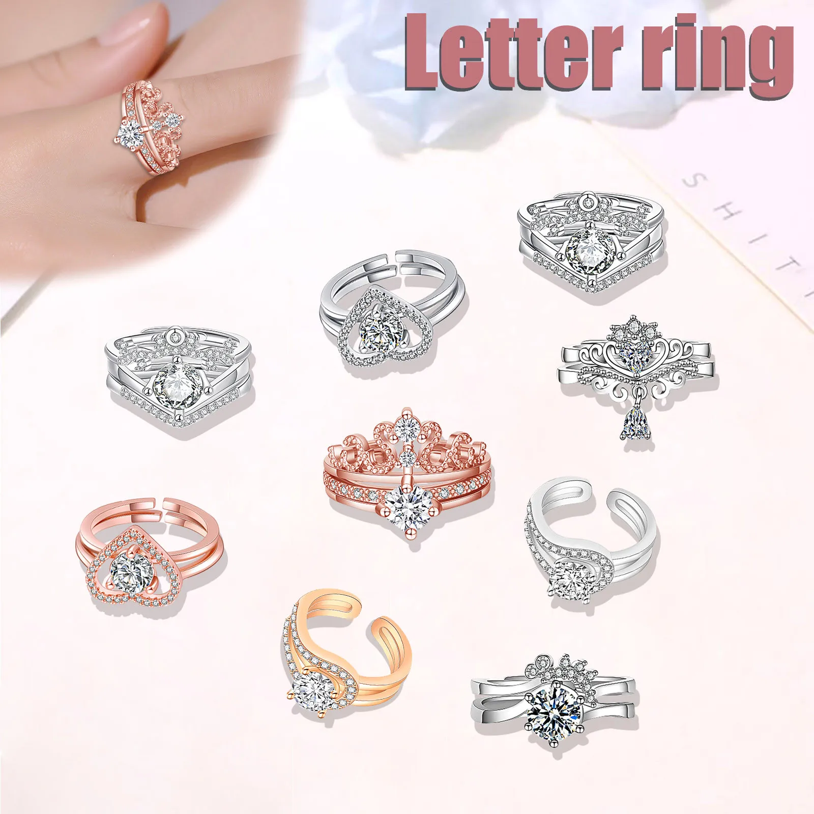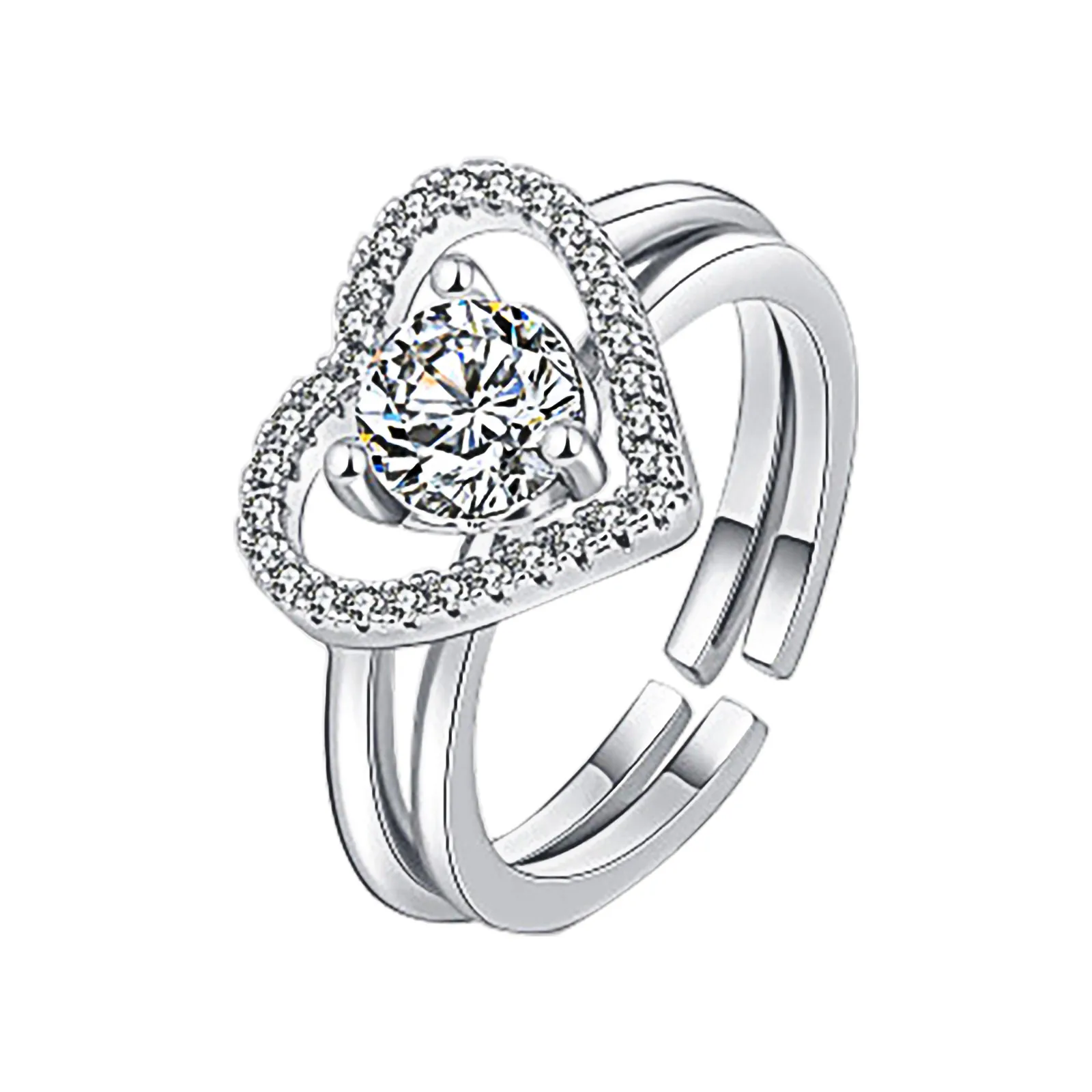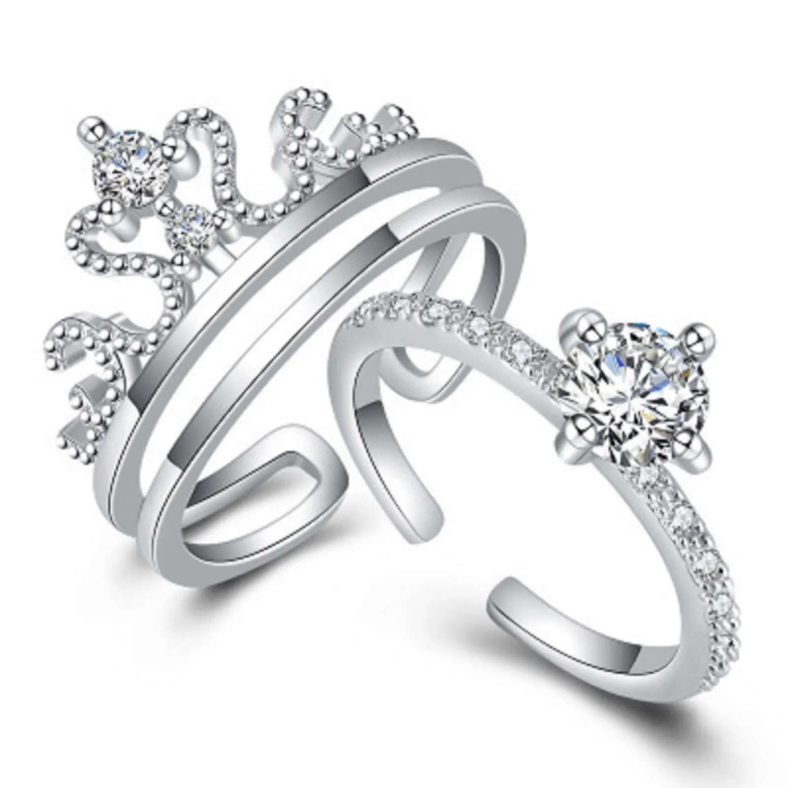 Модное популярное бриллиантовое женское кольцо корона сердце любовь два в одном Открытое сердце кольцо