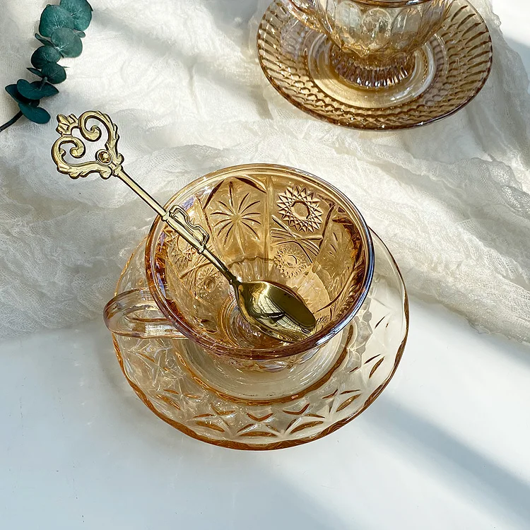 Чистая красная рельефная Янтарная чашка под кофе, тарелки, чашка для полудня, чай камелии, концентрированный La Hua Cafe B & B, чашка для воды ins