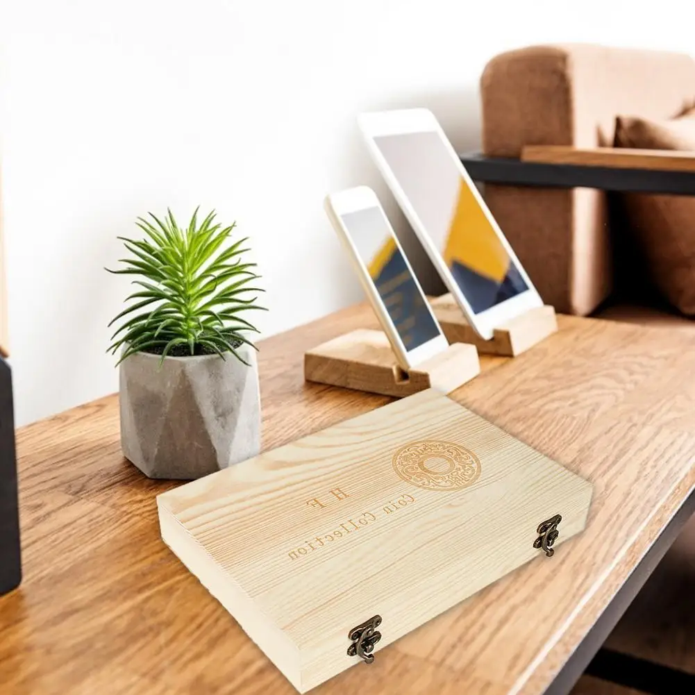 Деревянный ящик для хранения монет, регулируемый антиоксидантный коллекционный чехол для дома, простой памятный контейнер, универсальные капсулы