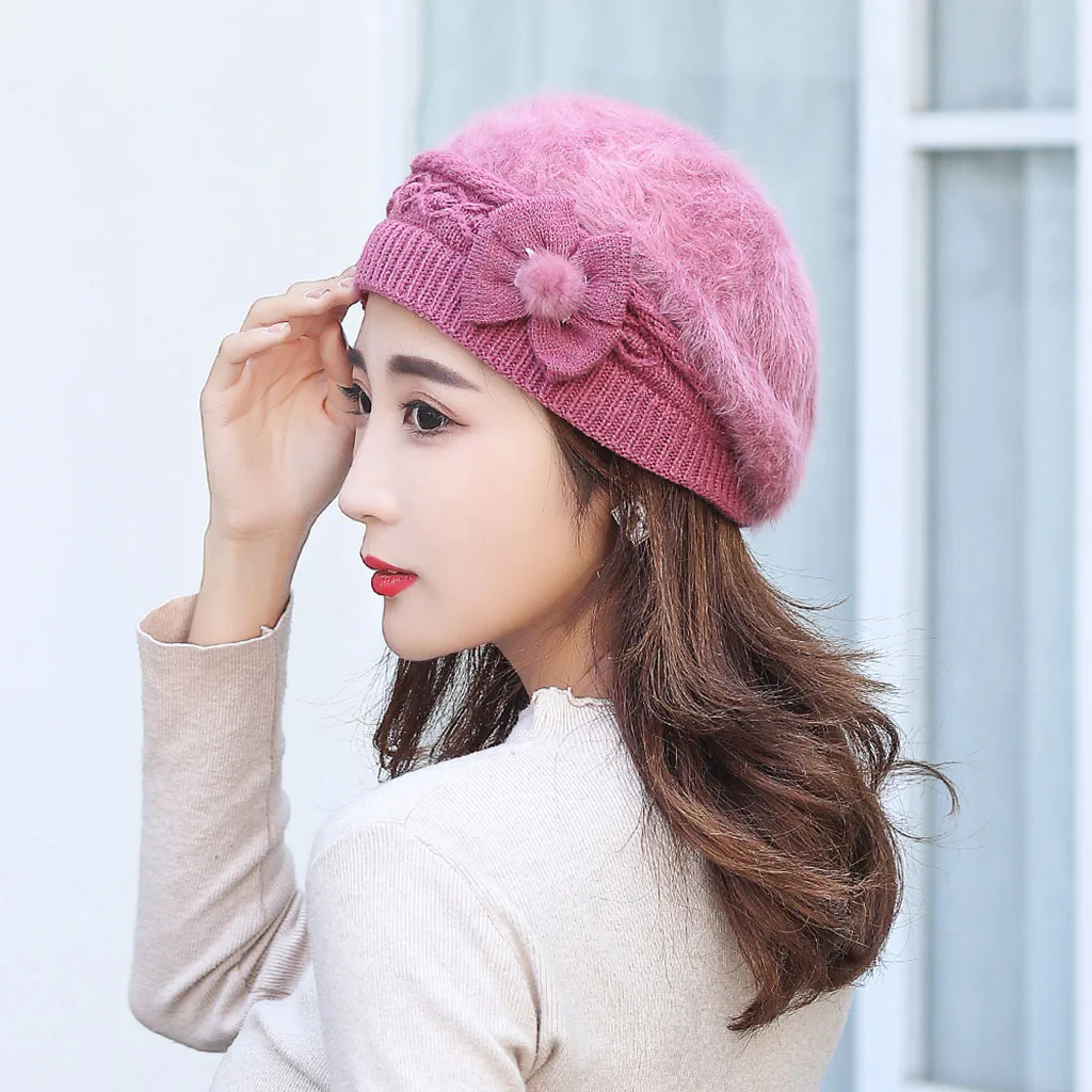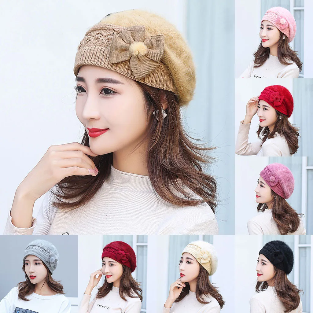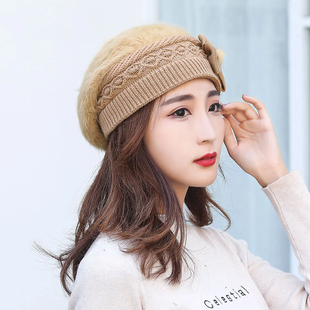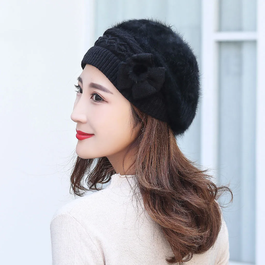 Модная женская теплая однотонная утолщенная Мягкая шерстяная шапка вязаная ветрозащитная шапка береты
