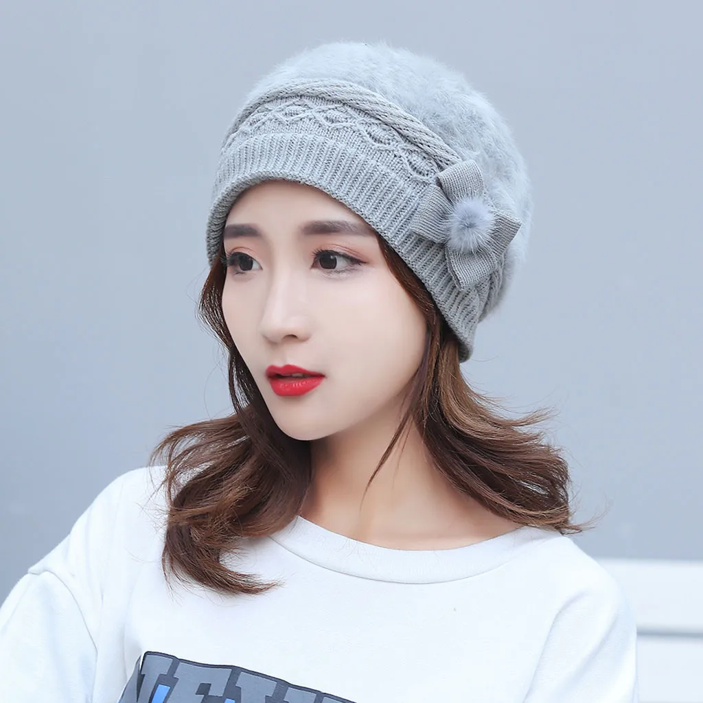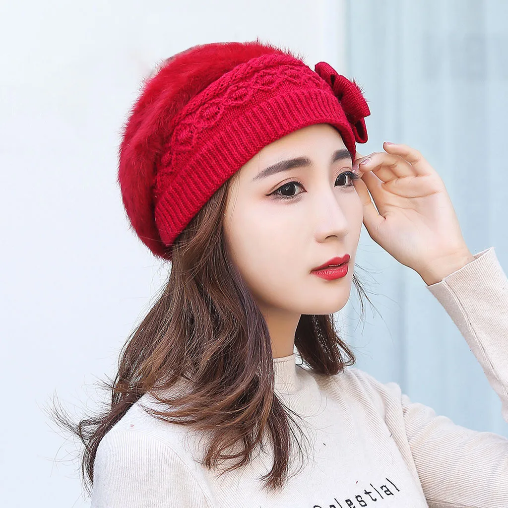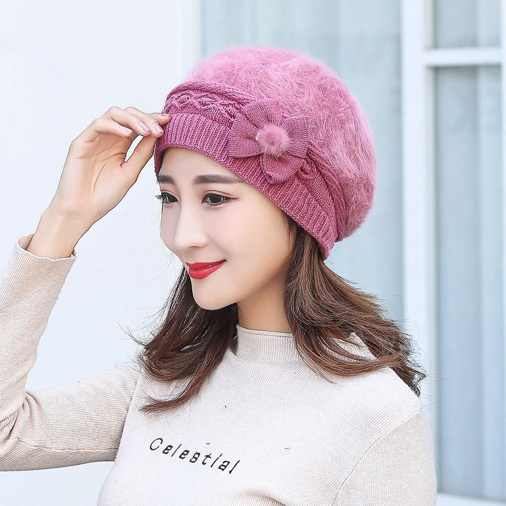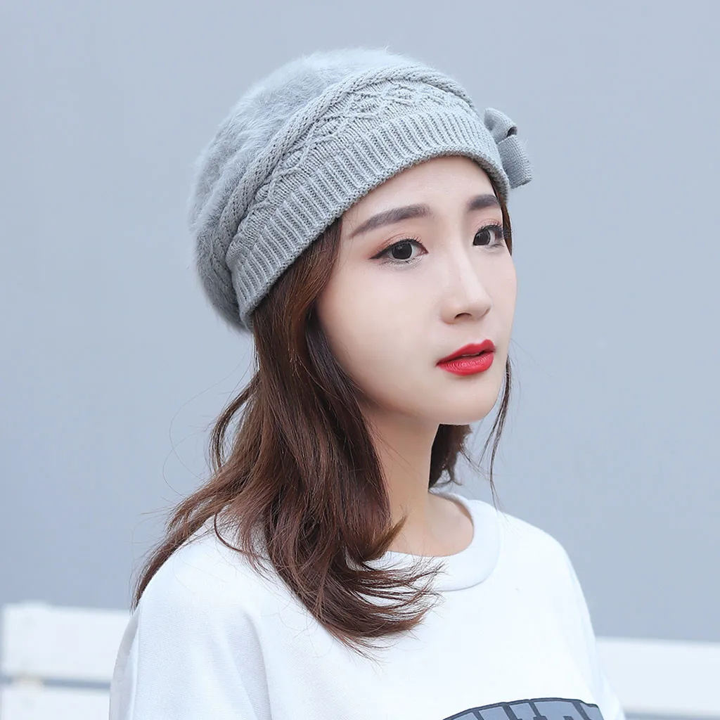 Модная женская теплая однотонная утолщенная Мягкая шерстяная шапка вязаная ветрозащитная шапка береты