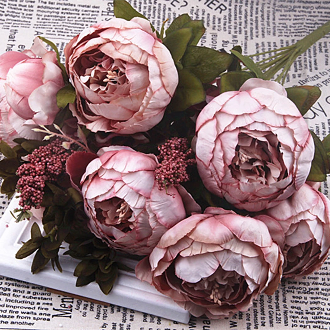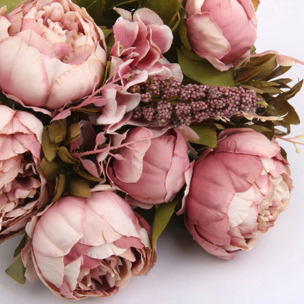 Искусственные цветы пиона, хорошо сделанные и яркие, выглядят как настоящие