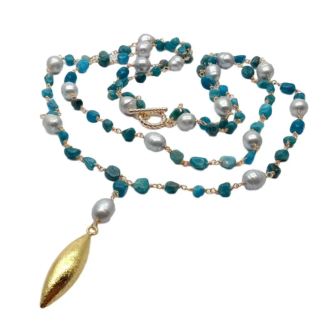 Информация о драгоценных камнями: Пресноводный Культивированный Жемчуг, серый рисовый жемчуг, Натуральный Синий Апатит, хорошее качество, высокий блеск!