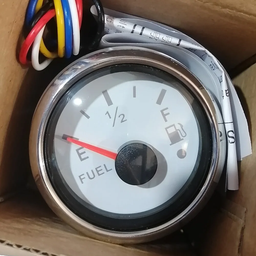 -Цвет лица: белый/черный -Размер крепления: 52 мм (2 ") -Диапазон индикации: E-1/2-полный -Рабочее напряжение: 9-32 в (12 В/24 В) -Материал: нержавеющая сталь 316L Безель + противотуманное стекло