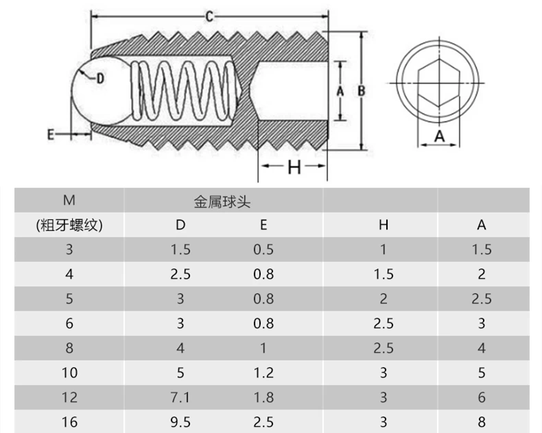 0,5 мм (M3)/0,7 мм (M4) /0,8 мм (M5) / 1 мм (M6)