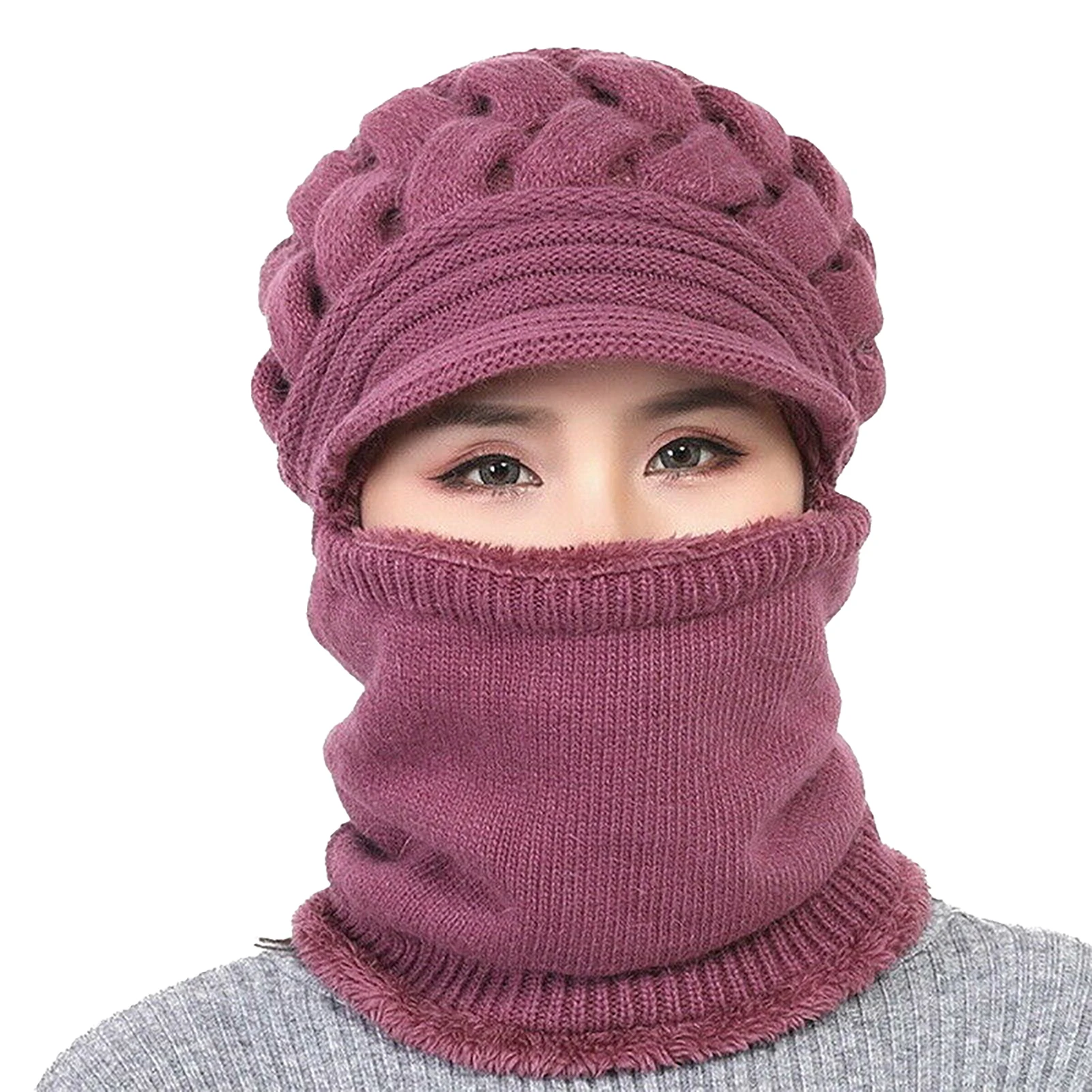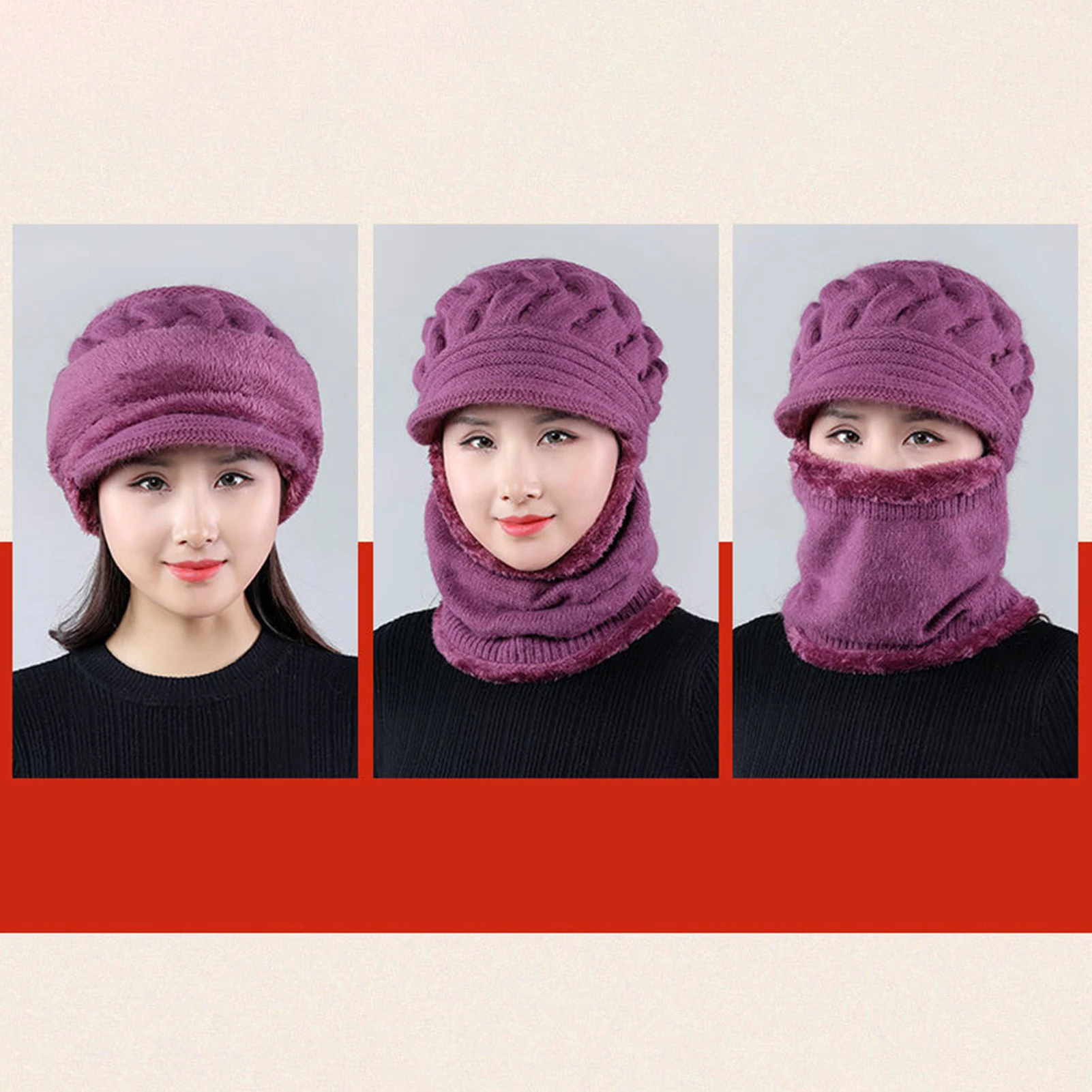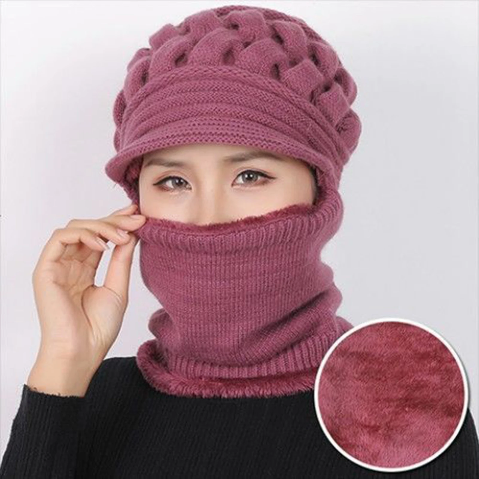 Женский Зимний вязаный ветрозащитный Теплый головной убор с шапочкой и шеей, шарф, подарочный набор