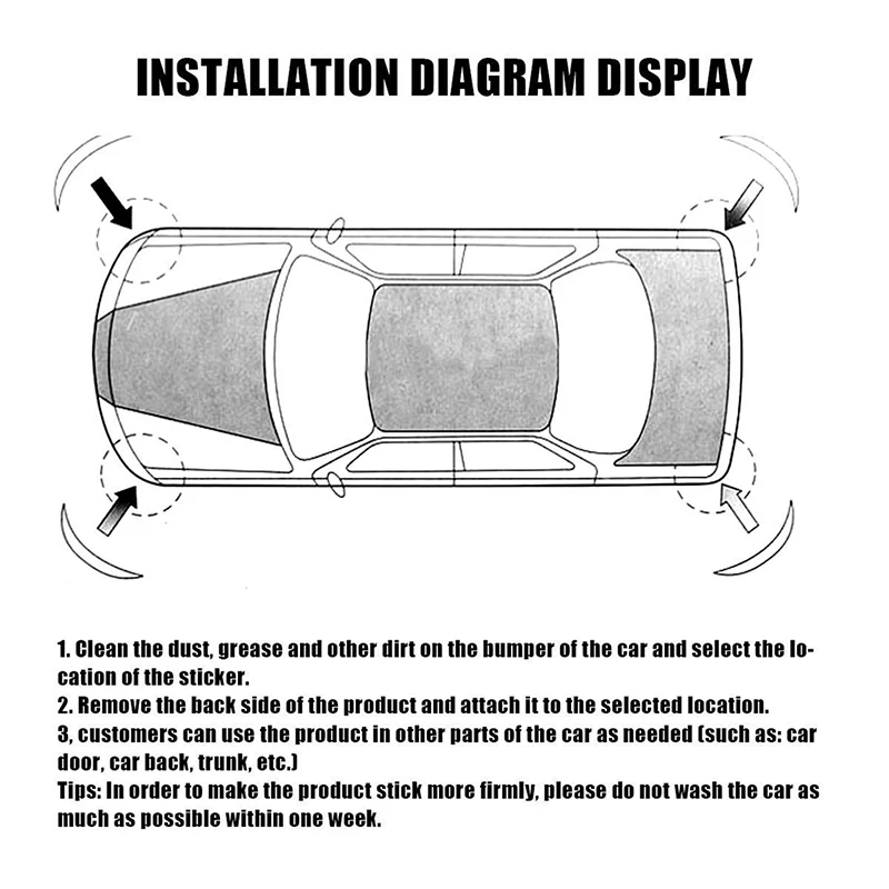 5. Этот товар может быть установлен в передней и задней части автомобильного бампера. Он обрабатывает специальное покрытие, защищает и украшает ваш автомобиль.