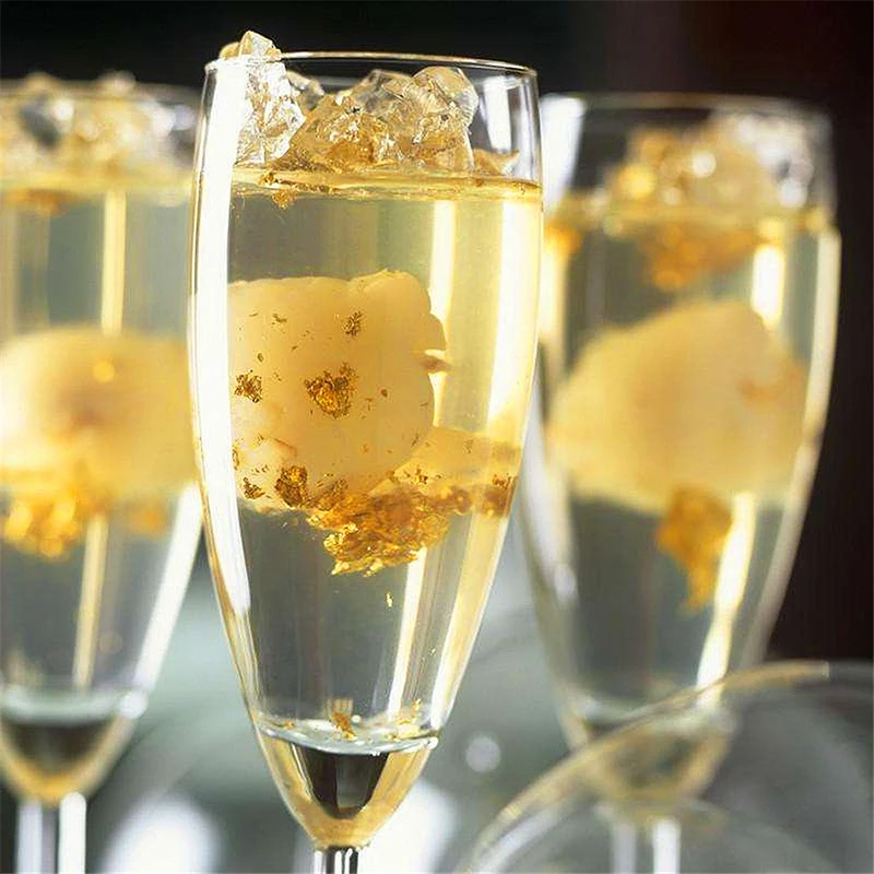 Это банка из безопасной и съедобной золотой фольги, которую можно добавить в спирт, выпечку, пирожные, кофе, чай, горячие горшки, приправы, косметику, средства для купания, улучшение качества товаров, украшая еду и демонстрирующая ее роскошный стиль и добавляющая праздничную атмосферу.