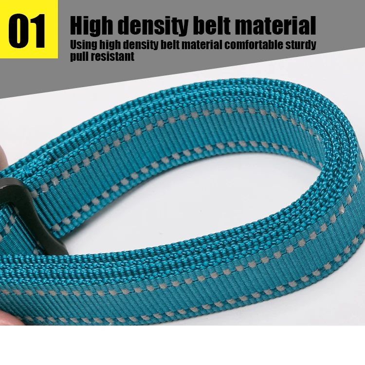 1. Нейлоновая ткань с высокой плотностью, чтобы добавить долговечность. Отражатели длиной 2,3 м, вплетенные прямо в поводок с обеих сторон, улучшают видимость в темноте. 3. Карабин из алюминиевого сплава имеет функцию закручивания, которая фиксирует ошейник или поводок ваших собак. 4. Ручка с мягкой сетчатой подкладкой удобно держать в руке. 5. Алюминиевый крючок крепкий и позволяет легко надевать и снимать поводок. Отверстие на крючке для крепления светодиодного светильника. 6. Дополнительная тесьма на ручке для крепления мешка для закусок. 7. Поводок можно регулировать на несколько различных длины от 110 до 200 см в зависимости от цели использования.