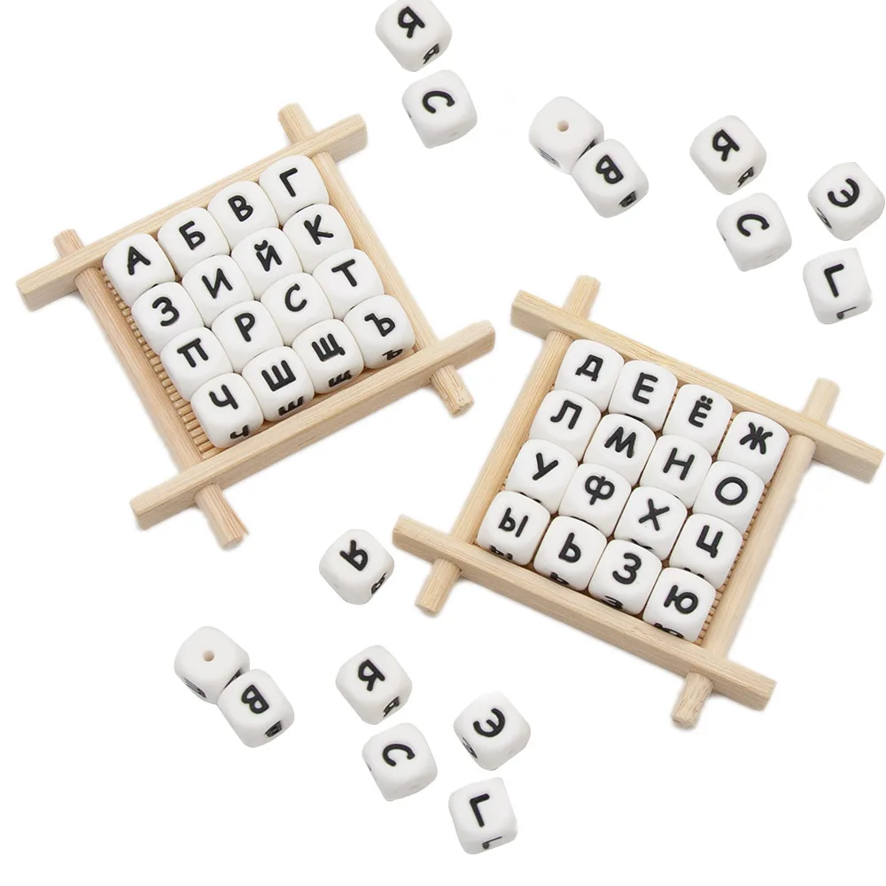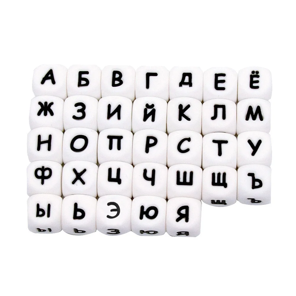 Милые 12 мм 10 шт. русские силиконовые бусины с буквенным принтом BPA бесплатно персонализированное имя соски цепи аксессуары для DIY ребенка Прорезывания Зубов Ожерелье Бусы