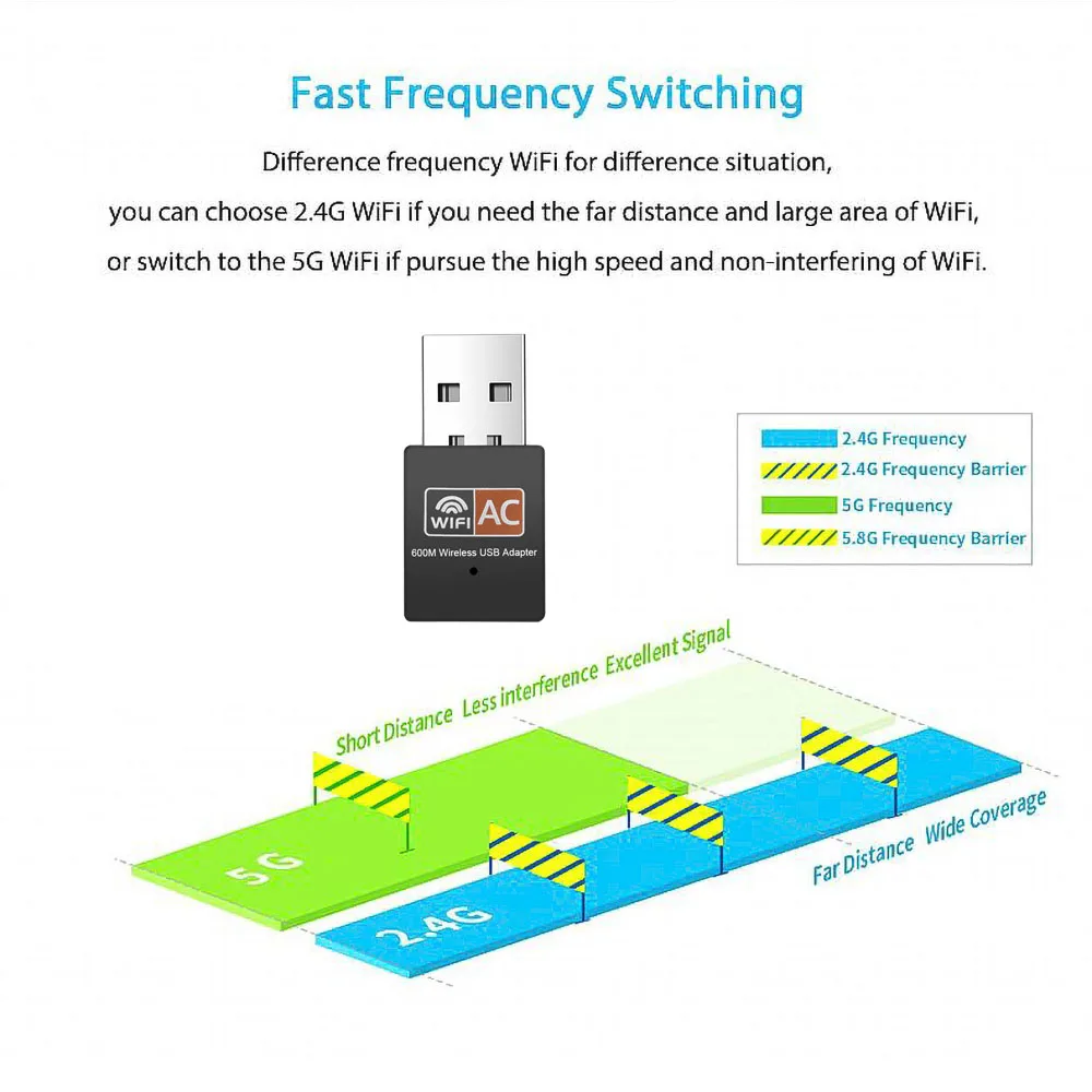 Два диапазона: альтернатива 11AC (5,8G) и 11N (2,4G) подключения для ТВ-шоу, hd-фильмов, потоковой передачи и онлайн-игр, чтобы избежать беспроводных помех.