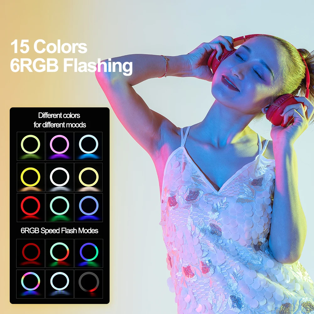 15 цветов и 6 RGB мигающий режим: Последний кольцевой светильник 2020 предоставляет вам теплый, белый, Дневной светильник и другие 12 цветов, включая 6 цветов вспышки rgb на выбор и гарантирует, что вы всегда можете получить правильный цветной светильник в различных обстоятельствах. Идеально подходит для украшения в помещении и на открытом воздухе, таких как фотографы, визажисты, прямые трансляции видео, создатели видео, день рождения, вечерние и т. Д.