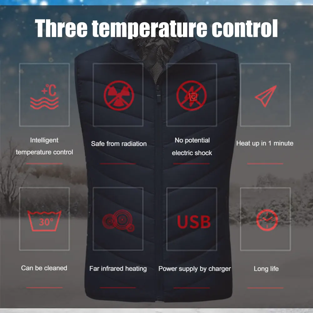 Жилет с зарядкой от USB и подогревом: на спине 2 зоны нагрева, от предварительного подогрева до очень высоких 3 уровней нагрева. Подходит для активного отдыха, такого как снегоход, мотоциклы, туризм, кемпинг, туризм, катание на лыжах, рыбалка, охота или офисная Повседневная деятельность, а также деловая деятельность осенью и зимой.