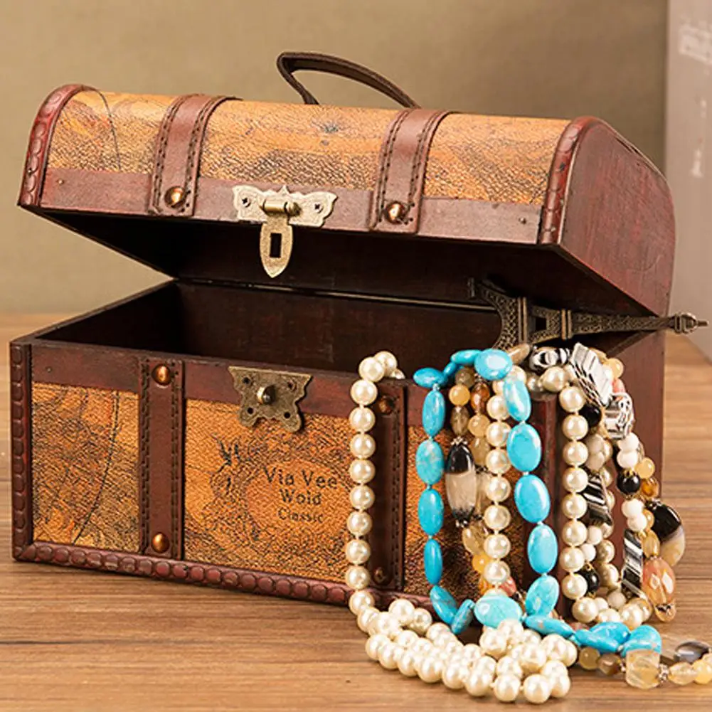 Ретро ящик для хранения сокровищ чехол для хранения декоративного деревянного сундука для хранения ювелирных изделий ожерелья сувениры для спальни
