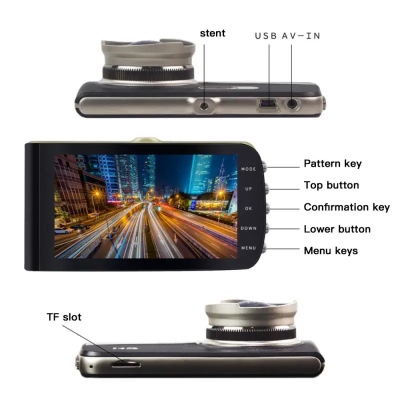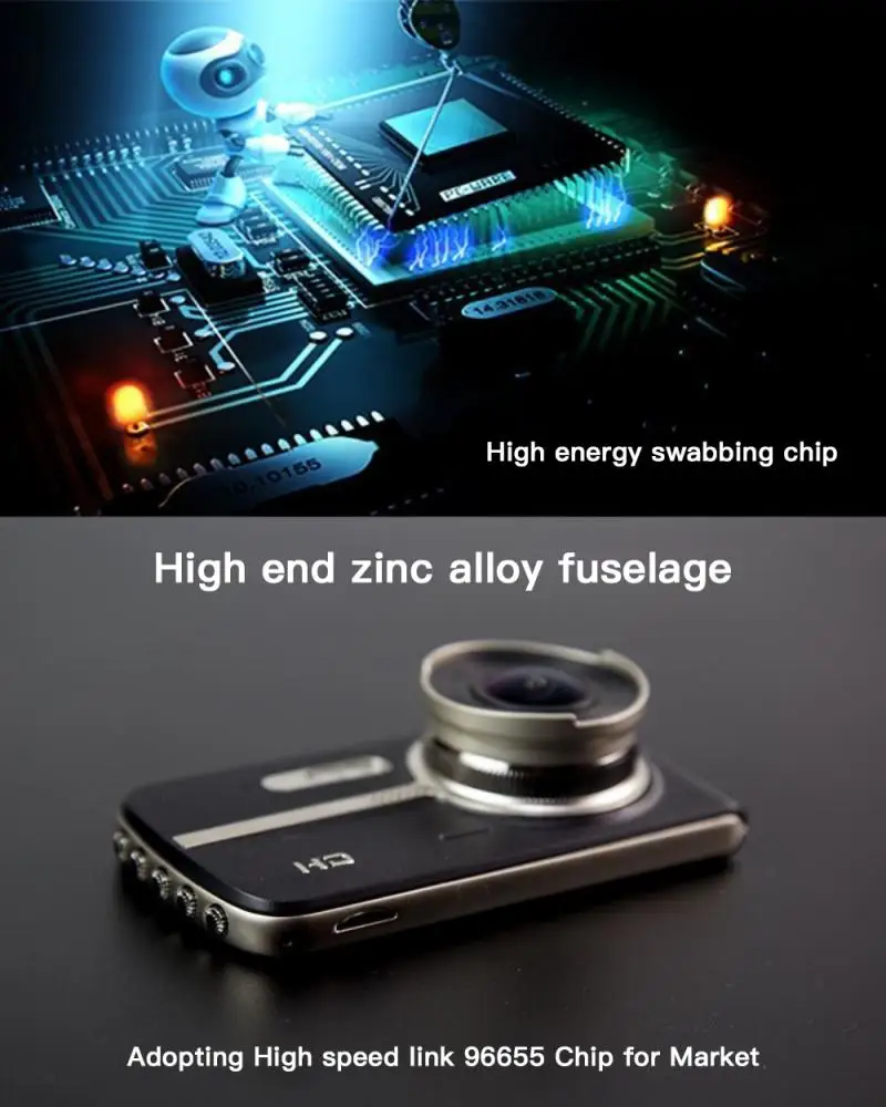 * Полная запись видео 1920*1080P с задней камерой и сенсорным экраном, простота в эксплуатации и настройке, что обеспечивает одновременную захват как переднего, так и заднего вида, обеспечивая двойную безопасность