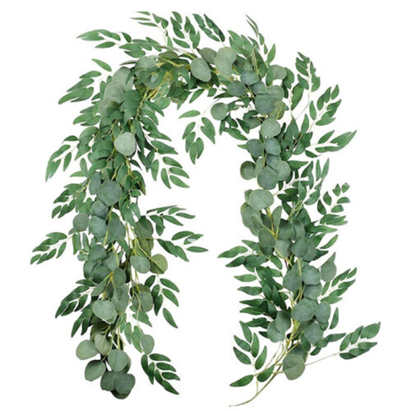 Длинная зеленая Виноградная лоза и матовая натуральная зеленая листва придают естественный внешний вид, они могут поддерживать вас в хорошем настроении. С реалистичными узорами зеленого эвкалипта и серебряного доллара эвкалипта, эта гирлянда идеально подходит для подвешивания над дверями, на столах, в качестве свадебного Лута или в качестве настольного бегуна. Повесьте там, чтобы интегрировать немного природы в ваше мероприятие! Это красивая ложная гирлянда зелени, идеально подходит для добавления центрального элемента в ваше мероприятие.