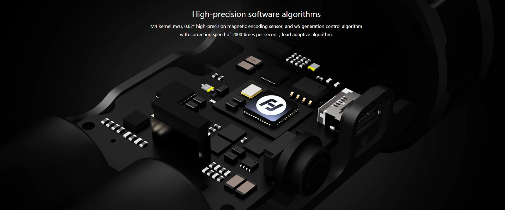 Высокоточные алгоритмы программного обеспечения M4 kernel mcu, 0,02 ° высокоточное магнитное кодирование датчика, и алгоритм управления генерацией w5 с коррекционной скоростью 2000 раз в сек., адаптивный алгоритм нагрузки.