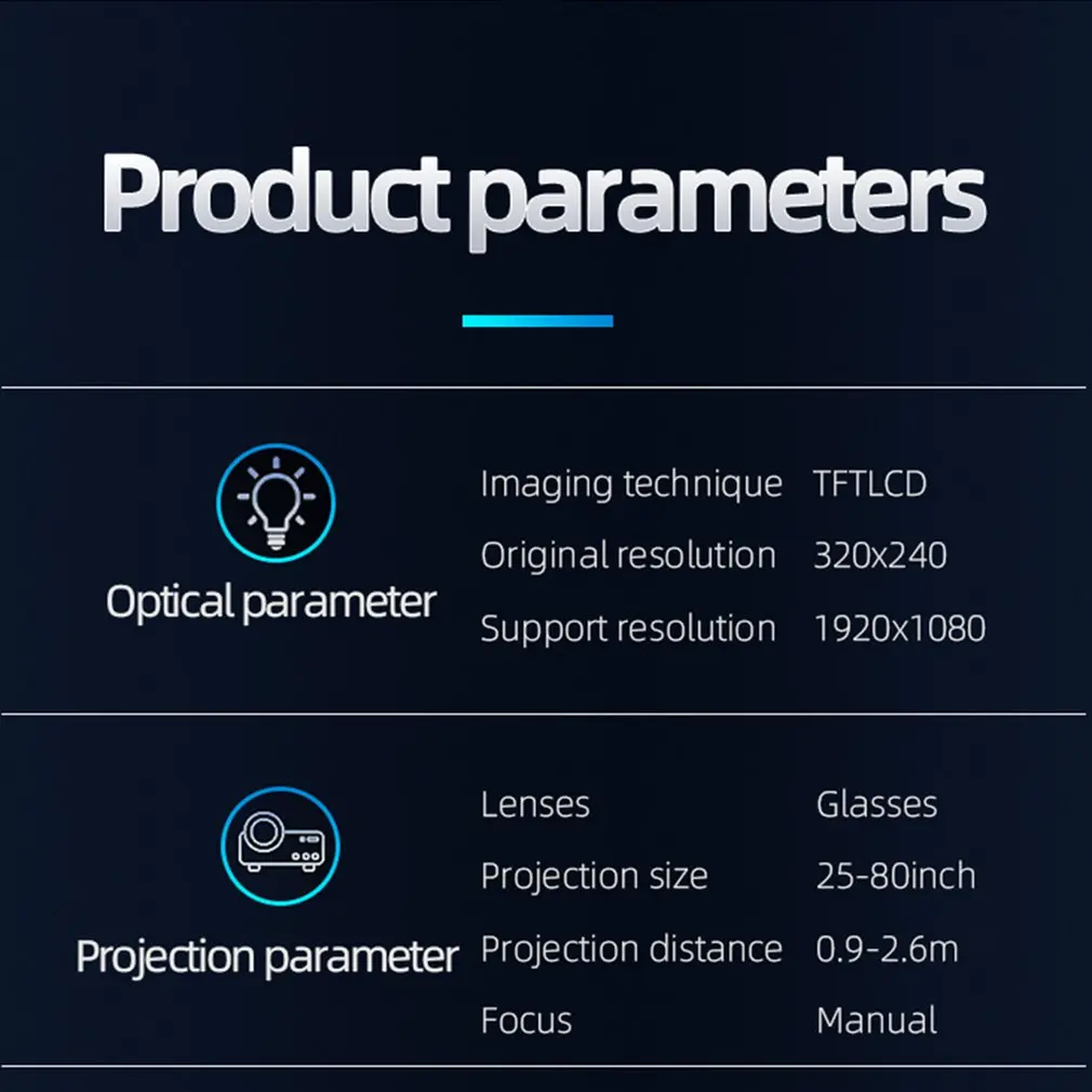 1. Компактный корпус, может проектировать экран 20-80 дюймов, смотреть гигантский экран в любое время.