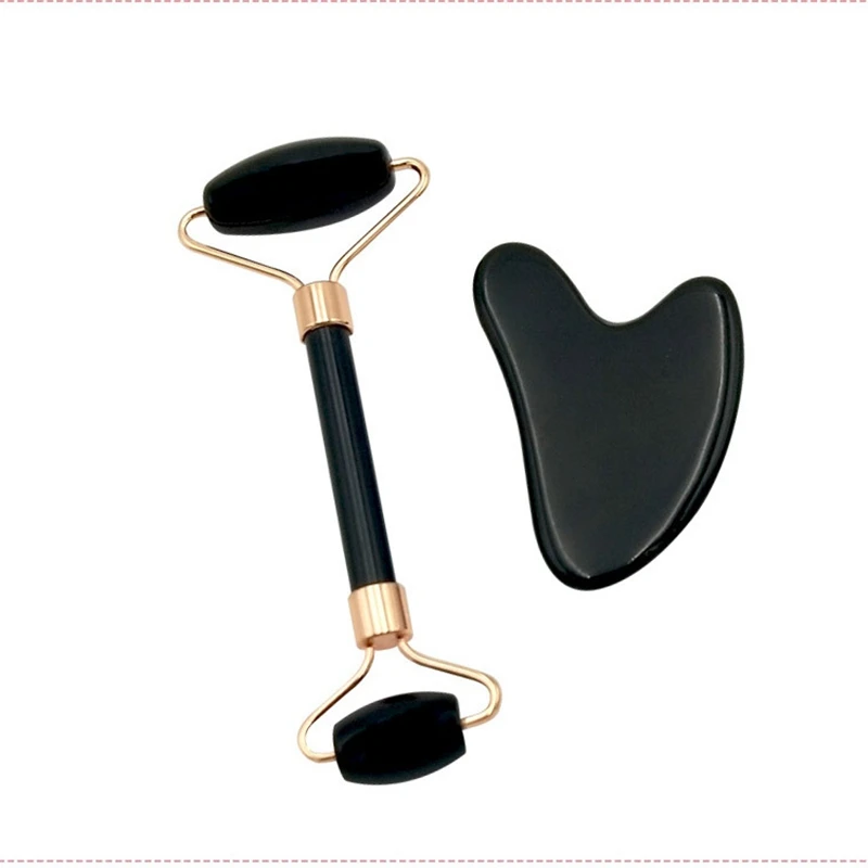 Натуральный обсидиан массажный ролик с двойной головкой Нефритовый камень массажный ролик для лица Guasha набор инструментов для шампанского