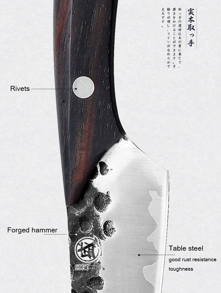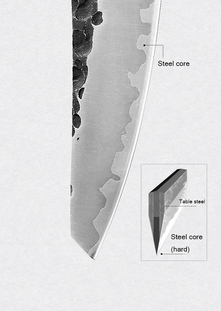 2. Поверхность Ковочного ножа шероховатая, не такая гладкая, как нож, изготовленный машинами, но он действительно показывает характеристики Ковочного ножа.