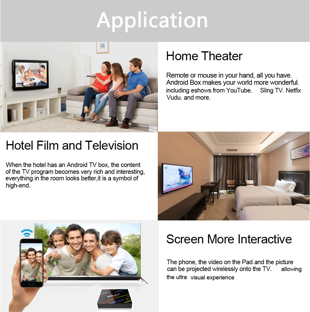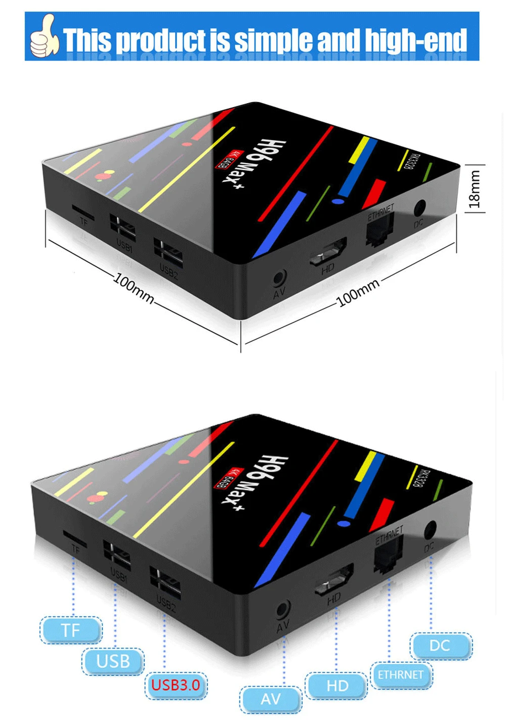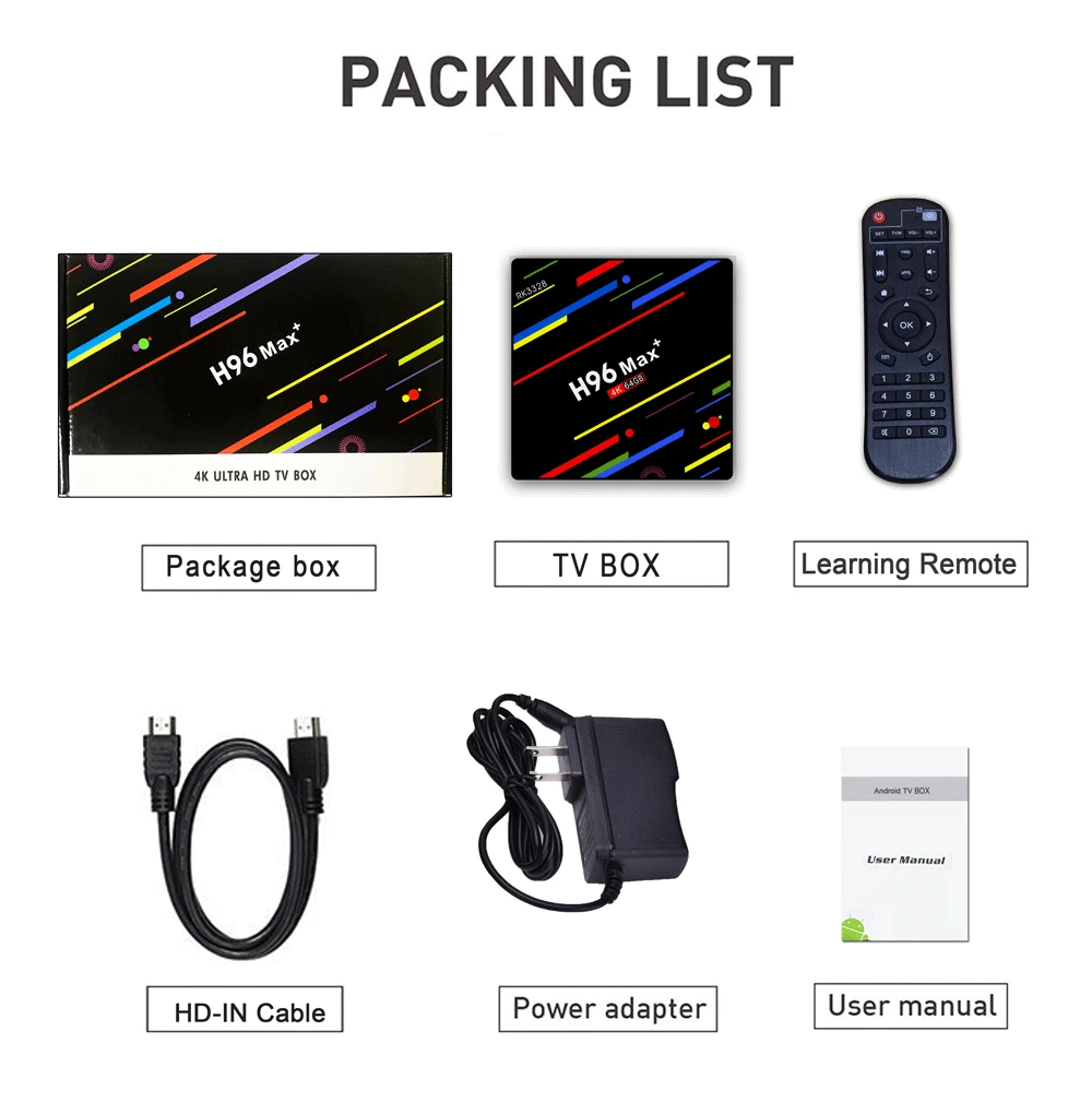 Технические характеристики оборудования Набор микросхем RK3328 четырехъядерный 64 бит Cortex-A53 Графический процессор Penta-Core Mali-450 до 750 МГц + Вспышка EMMC32 Гб 64 ГБ SDRAM 4 ГБDDR3 Поддержка Характеристики источника питания ◆Источник питания 5 В/2 а постоянного тока ◆Индикатор питания (светодиодный) Включение питания: синий; Основные характеристики ◆ОС Android 9,0 ◆Формат декодера поддержки 4K VP9 видео декодер, H.265/H.264 видео декодер