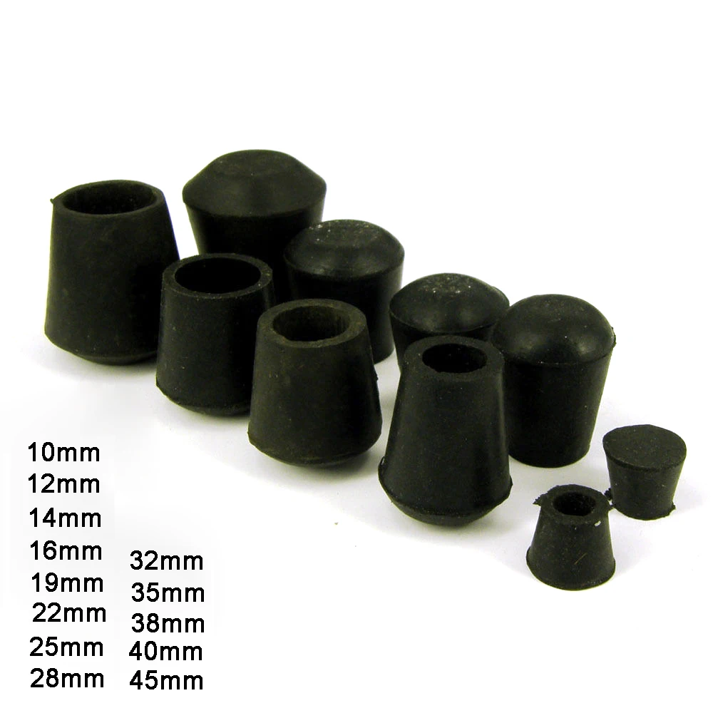 Характеристики: Материал: резина Цвет: черный Размеры: внутренний диаметр 10 мм 12 мм 14 мм 16 мм 19 мм 22 мм 25 мм 28 мм 32 мм 35 мм 38 мм 40 мм 45 мм Резиновые ножки/подходят к концу трубки или ноге, как к обуви Черная резина, идеально подходит для ног стула, инструментов, защиты от царапин на полу. Посылка включает в себя: в соответствии с вашим choic