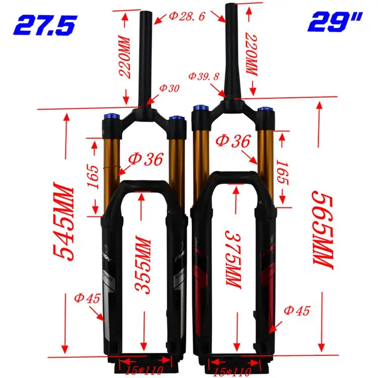 4. Длина подставки forefork составляет 220 мм, ход подставки 28,6 составляет 165 мм (диаметр хода 36 мм), а Шестерня открывания 15*110 мм