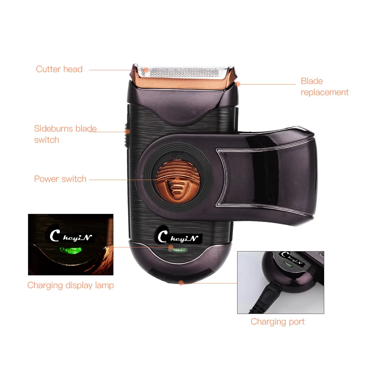 Перезаряжаемая бритва, мощный триммер для бороды, бритва для удаления волос, безопасная возвратно-поступательная бритвенная машина с запасной фольгированной головкой