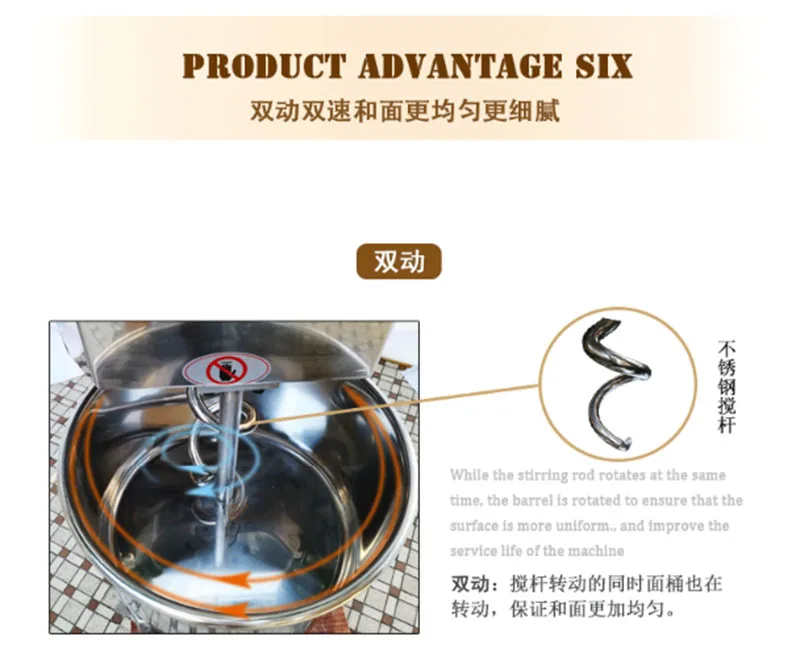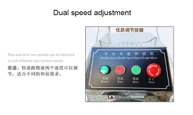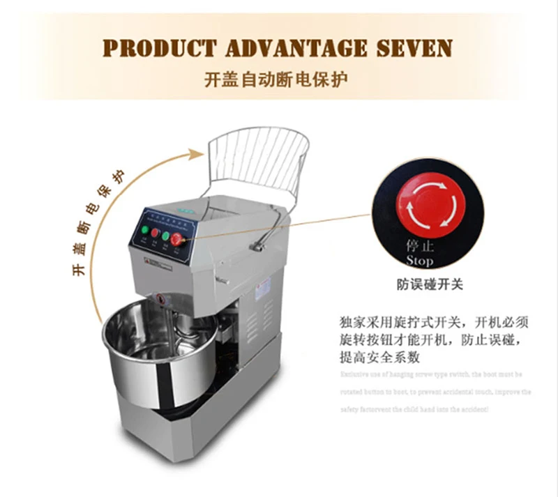 Двойные двигатели обеспечивают Двойное действие и двухскоростную работу и могут достигать сильной степени при медленном перемешивании. Специальный структурный дизайн, температура трения низкая при перемешивании, тесто нагревается медленно, и скорость перемешивания высока.