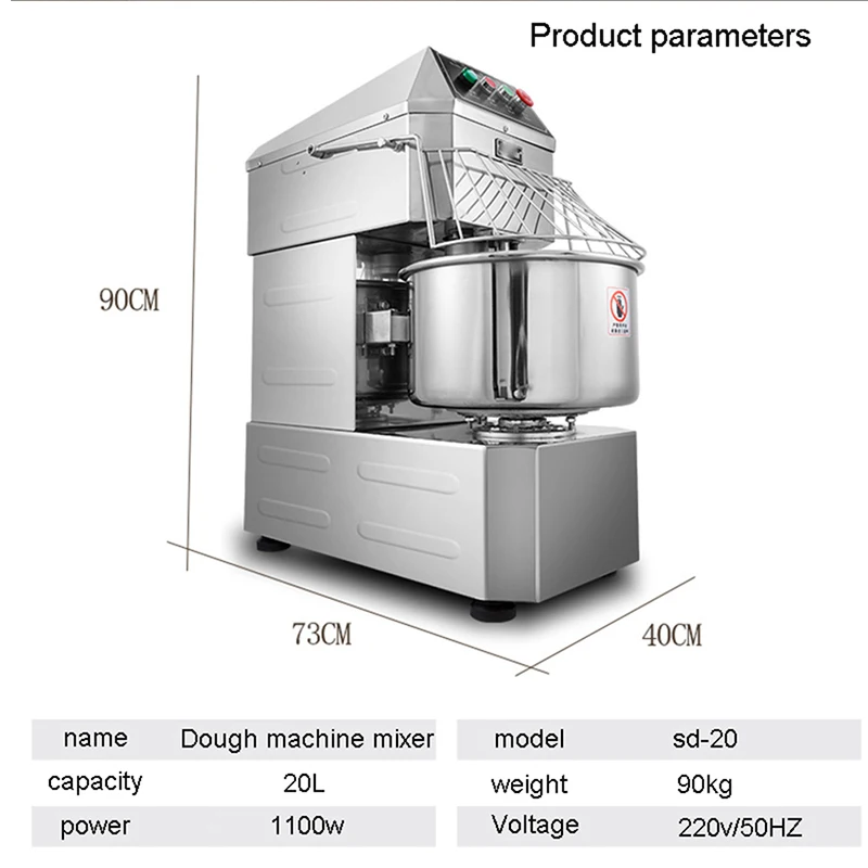 Наименование: двухступенчатый миксер для теста Модель: SD-20 Напряжение: 220 В Частота: 50 Гц Мощность: 1100 Вт Емкость: 20 л Вес: 90 кг: Размер: 730*400*900 мм