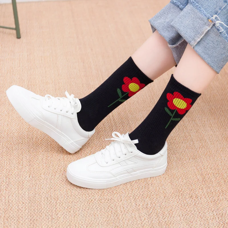 Упаковка: 1 пара носков с черными цветами
