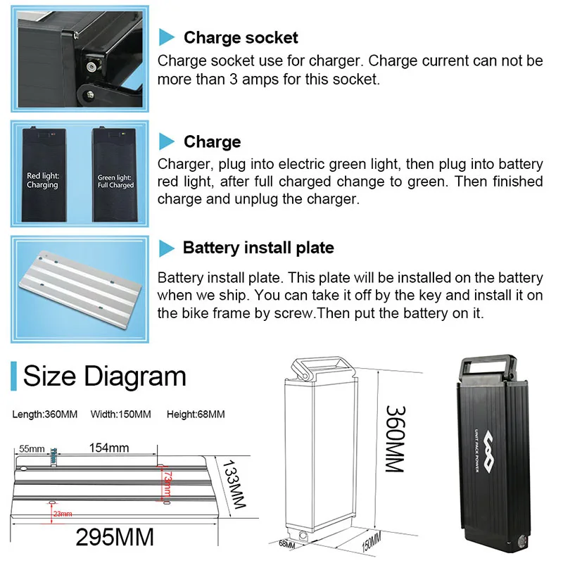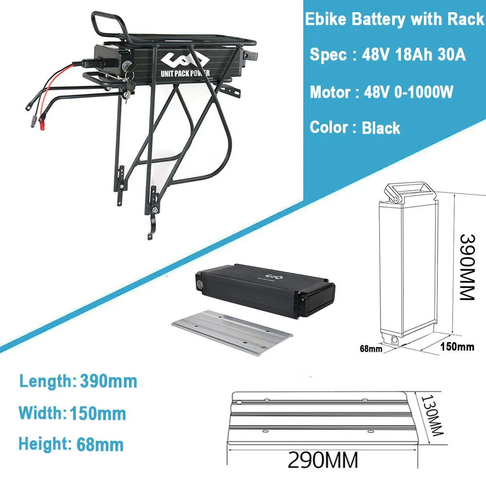 Примечание: обратите внимание, что 48 В 15ач и 18АЧ/21ач, размер батареи отличается (стойка одинаковая, просто батарея отличается).