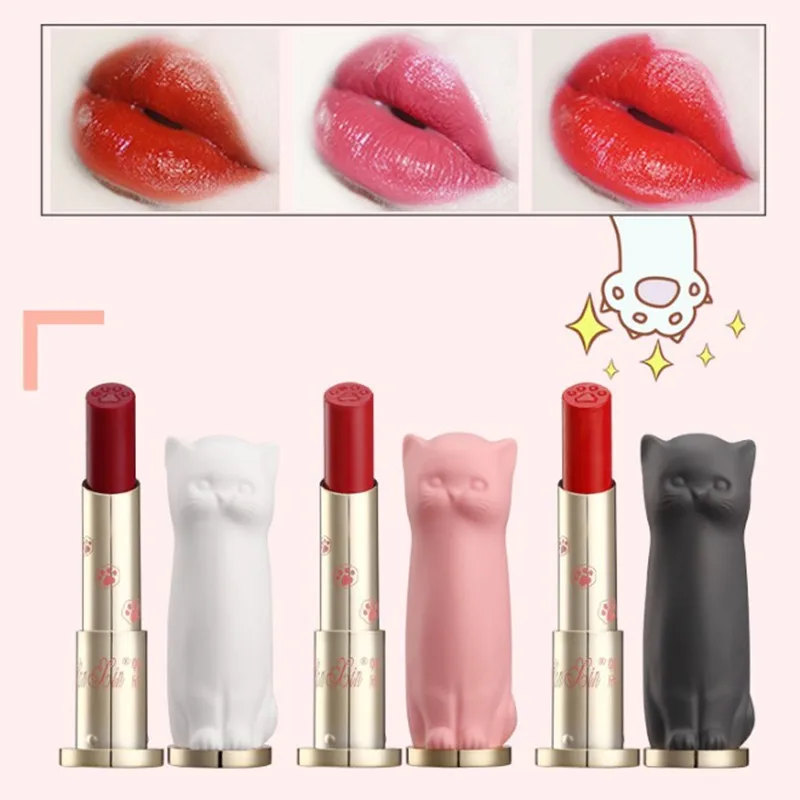 3 шт./компл., губная помада для кошек, макияж, губная помада для кошек, набор, водонепроницаемый, долговечный, Кристальный, увлажняющий бальзам для губ, легко носить