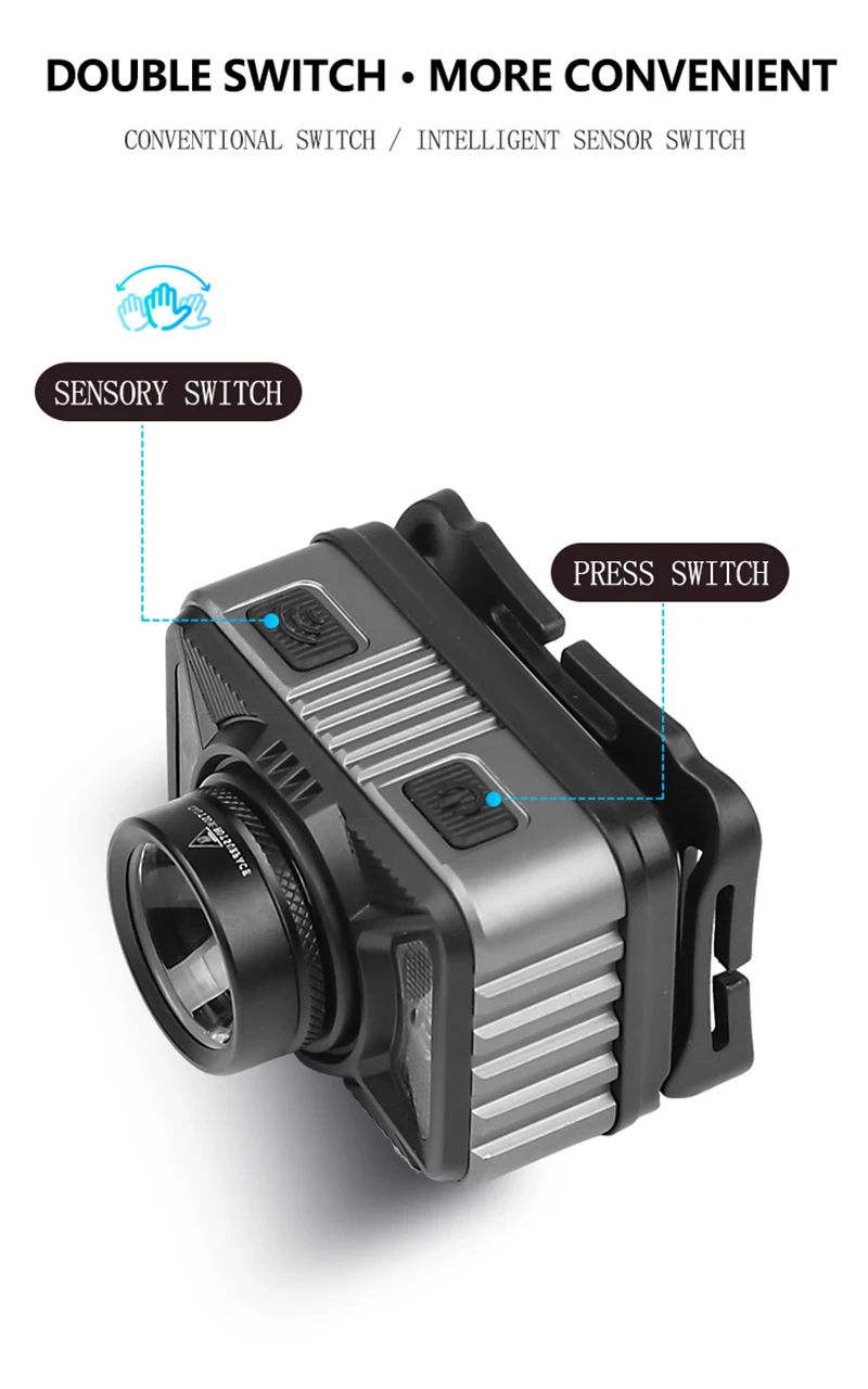 1. Индукционная фара, когда ваша рука находится рядом с фаройВ пределах 15 см, Фара включится, когда вы оставите налобный фонарь пальцем, он будет выключен.