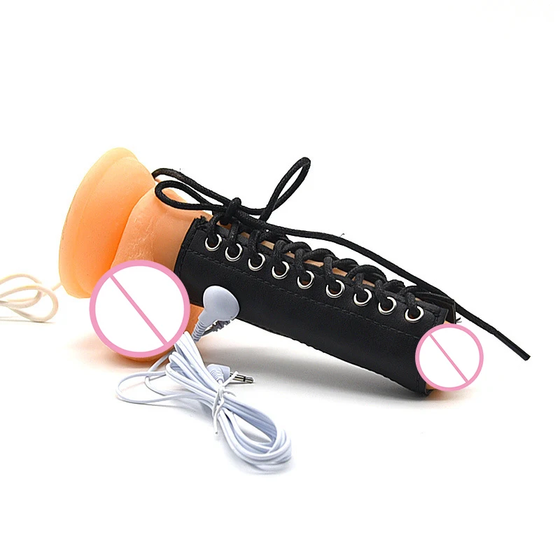 Электро шок насадка на пенис биполярный мужской бондаж ПУ кольцо на член электрическая стимуляция пенис пытка мастурбация секс-игрушки для мужчин