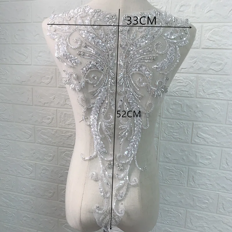 Серебряное высшее качество LA018 высокое качество серебряная нить бисерная Кружевная аппликация с блестками свадебное платье Цветочная аппликация