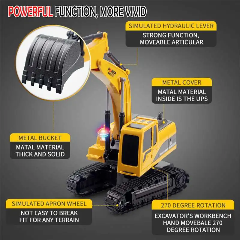 1:24 Радиоуправляемый экскаватор игрушки 2,4 ГГц 6-канальный пульт дистанционного Управление монтируемая Автомобильная сплава и Пластик автомобиля РТР дистанционного управления для детей Рождественский подарок