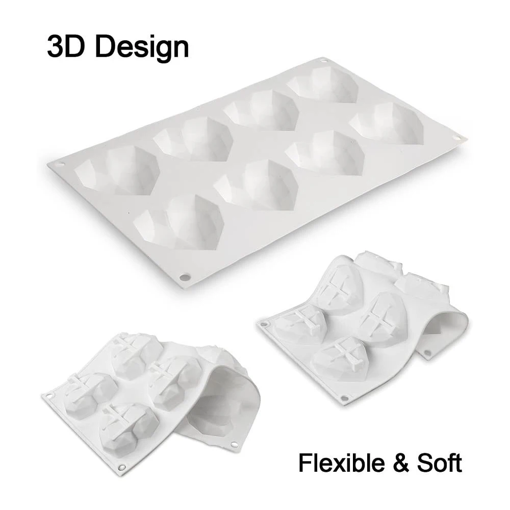 Термостойкая температура: от-40 до + 240 градусов Использование: формы для муссовых тортов очень подходят для изготовления жевательной резинки, желе, маффинов, фуджа, глазури, расплавленного шоколада, сырного торта, воска, льда, мыла, смолы, выпечки, поп-палочки и все типы плесеной глины. Подходит для приготовления сока. Сфера применения: кухонные принадлежности, микроволновая печь, духовка, холодильник и морозильник