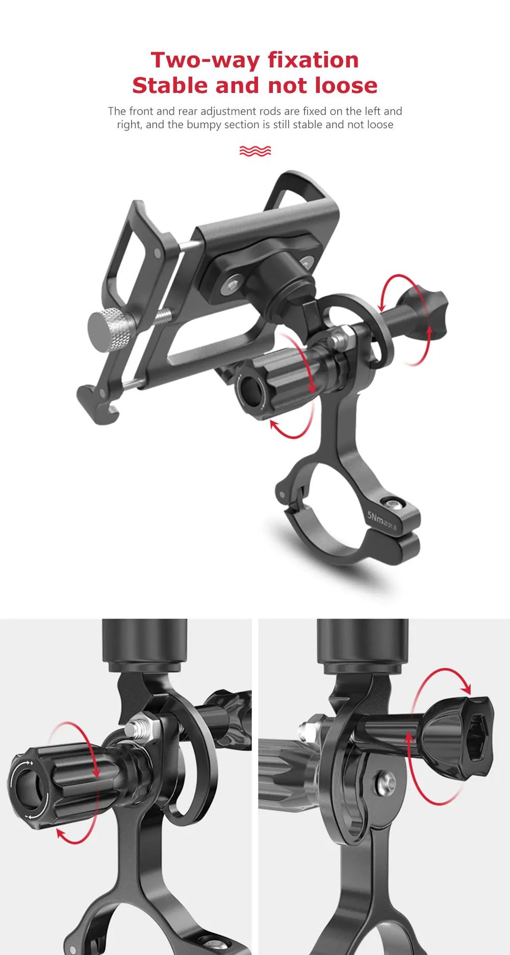 Особенности: корпус рамы из алюминиевого сплава, двойные крепежные ручки отказываются встряхивать, высокая совместимость не выбирает модель на мобильный телефон, велосипеды, электромобили и т. д. можно использовать!